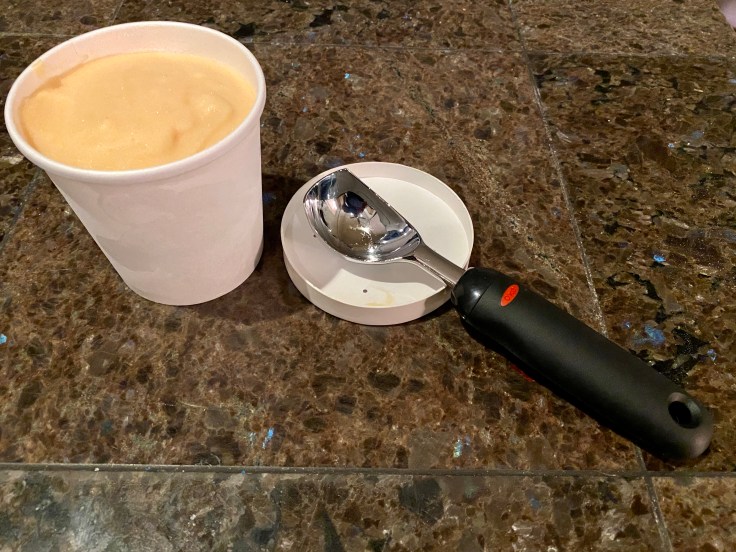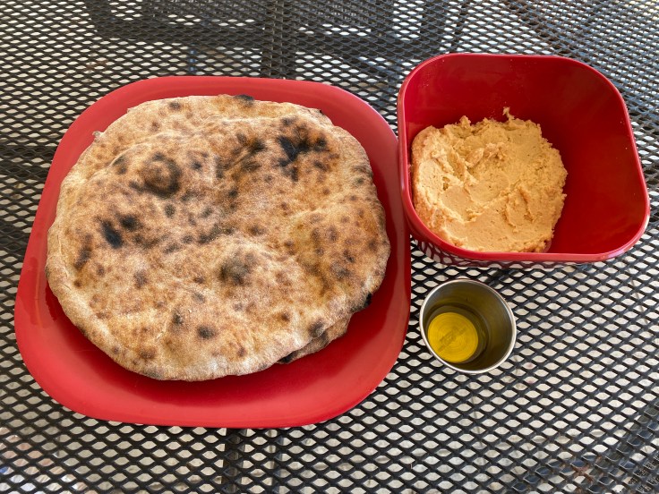 Besides pizza, Myke’s has cultivated a small secondary specialization in Mediterranean foods. A creamy hummus with ample lemon flavor comes with two generous pieces of pita bread, similar in texture and flavor to Myke’s pizza crust but with airy pockets inside. For dessert, Myke’s continues the theme with baklava, as well as chocolate chip cookies with a sprinkling of course sea salt. A more recent addition is the production of small batches of frozen desserts sold in pint containers. Those same peaches that top pizzas also make a smooth sherbet.
