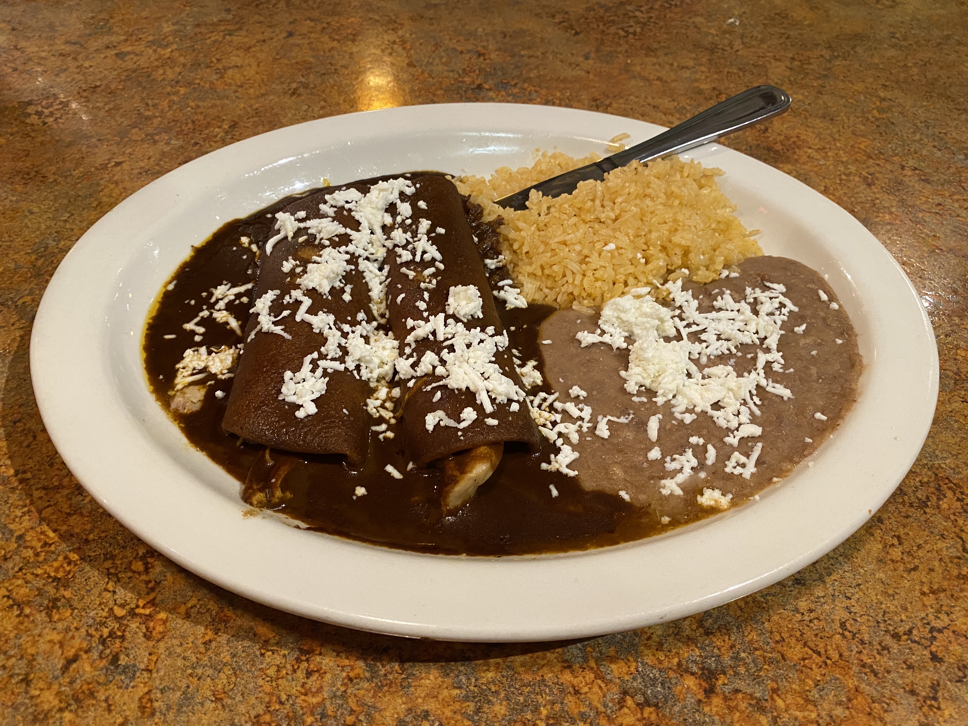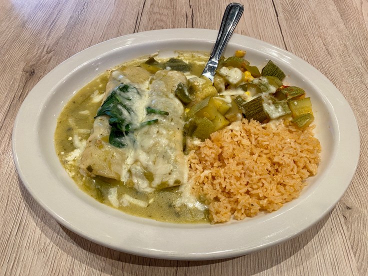 Recurring specials for each day of the week are some of the best lunch values. Wednesday brings chicken enchiladas in a rich, nuanced mole sauce with notes of chile and chocolate. Thursday, it’s meatless spinach enchiladas with the usual side of refried beans replaced with calabacitas, Mexican grey squash mixed with corn and cheese. On Friday, large, steaming bowls of cocido de res, beef soup with big chunks of vegetables, are served. Other soups, including chicken, albondigas (meatballs), shrimp, and mixed seafood are available all week.