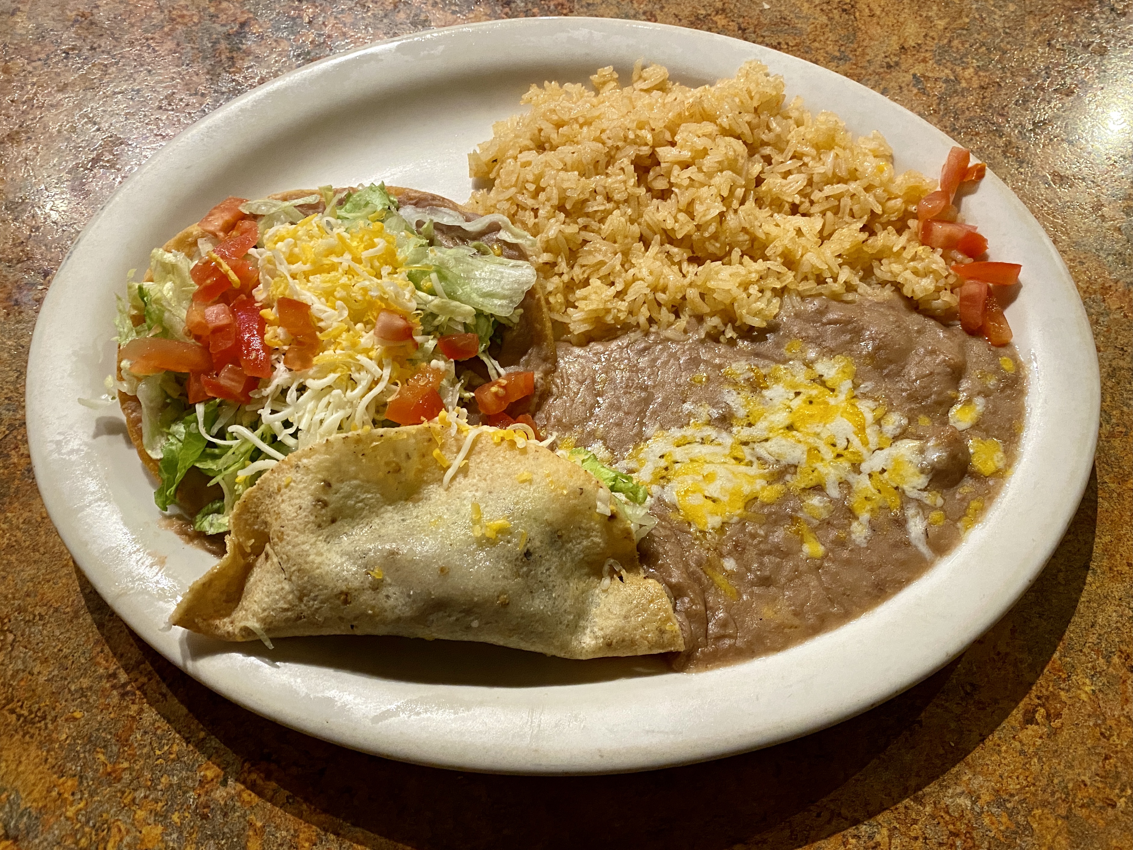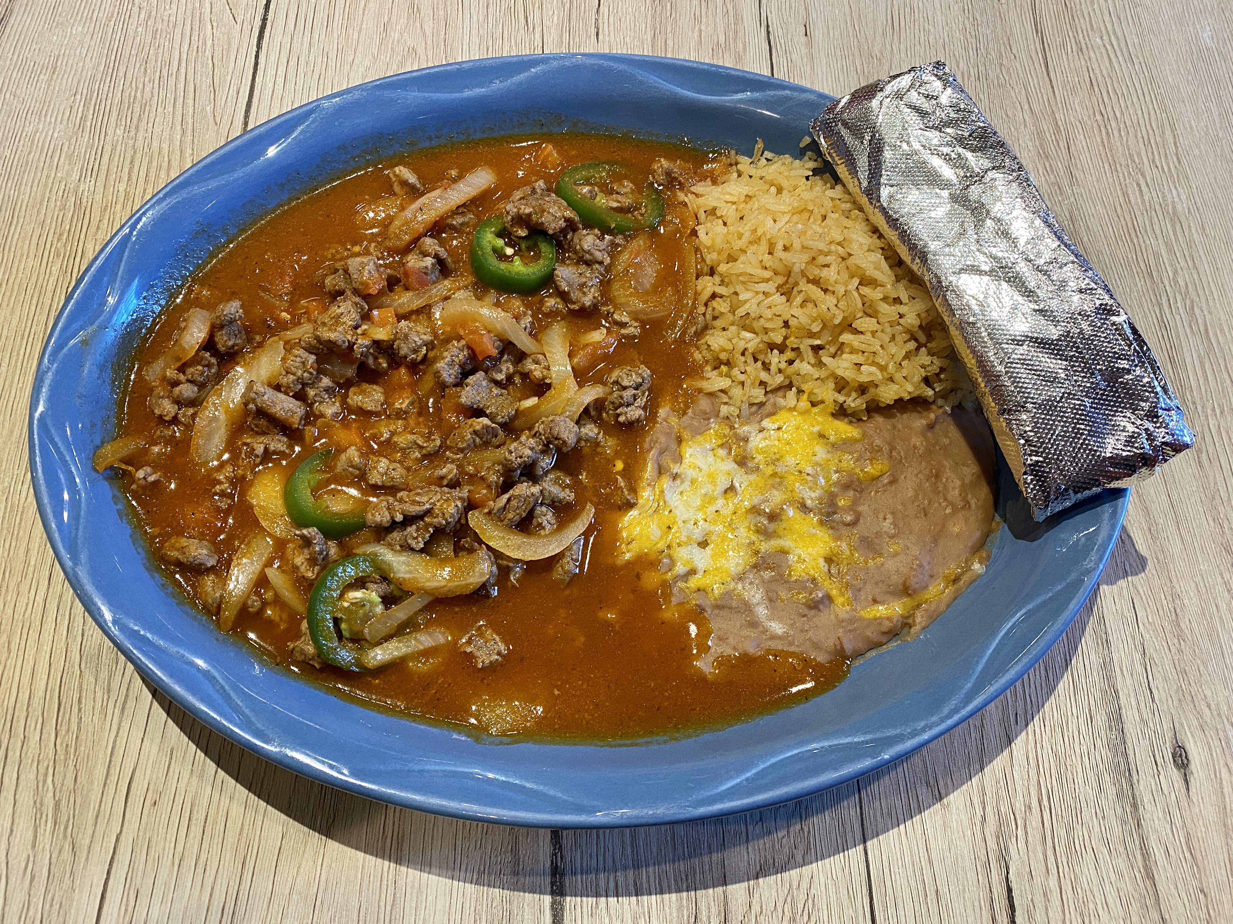 The breakfast menu, available only until 11 AM, features huevos just about any way imaginable, with chorizo, on top of enchiladas, inside burritos, or even paired with shrimp or steak. On weekends, those options are supplemented with menudo. After 11, breakfast gives way to lunch specials with familiar options like cheese enchiladas, chicken flautas, bean tostadas, and crunchy tacos with a mixture of ground beef and potatoes. Burritos and chimichangas overflow with fillings of chicken or red or green chili beef with the option to upgrade to enchilada style.