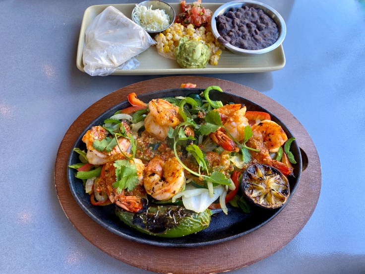 The various taco fillings can also find their way into enchiladas, burritos, and even deep-fried chimichangas. In some cases, ingredients that might not have quite the right texture for tacos work remarkably well in another context. Such is the case with the sweet potato enchiladas, a hearty vegetarian choice, and the pork chile verde burrito, filled with a traditional stew. The fajitas are festive platters with peppers, onions, and a cob of elote. The tiger shrimp version of the Tex-Mex favorite is somewhat surprisingly one of the spiciest options on the menu.