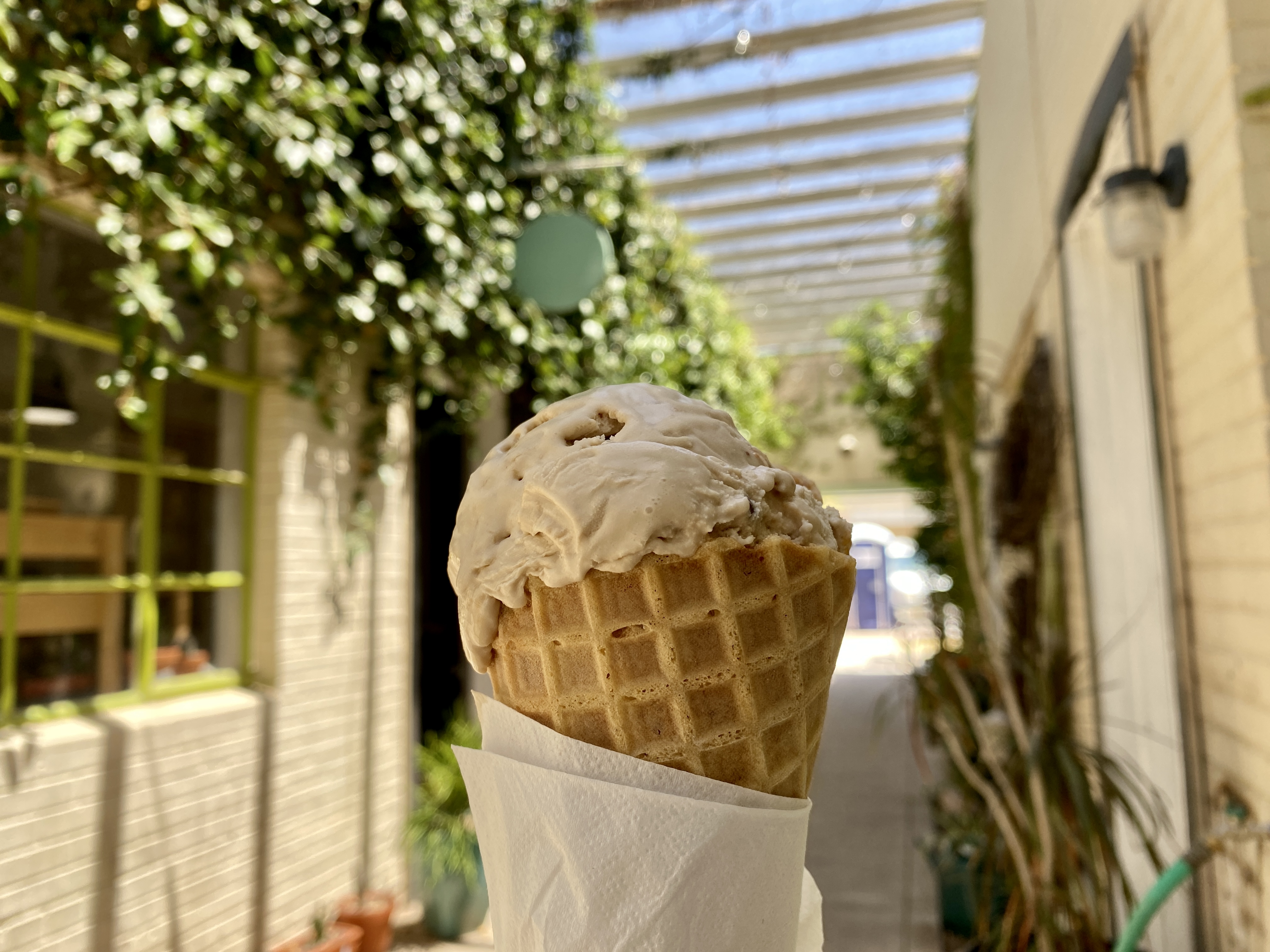 Mesa’s Novel ice cream shop is hidden in a building known as the Greenbelt, a vintage low-rise across the street from the Arizona Museum of Natural History and around the corner from the i.d.e.a Museum. The location makes sense as a place to reward children after a successful museum visit, and it also complements the dramatic growth in downtown Mesa’s dining options. To reach Novel, head down a shaded outdoor corridor, passing other small businesses like Fritz’s Barbershop, the Organic Bean Cafe, and the Barrel + Bloom plant shop along the way.