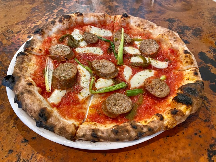 Another defining element of the restaurant’s approach is wood-fired cooking, and that’s evident after one look at the beehive oven in the open kitchen in the back of the room. It’s used to produce pizzas with a crust that is both chewy and slightly charred, but never brittle. Pizza toppings change regularly but can feature options as familiar as spicy sausage from Arcadia Meat Market or as uncommon as octopus. The oven also produces slices of airy, pliant focaccia that are the basis of both a ham sandwich and a vegetarian one full of avocado and red onion.