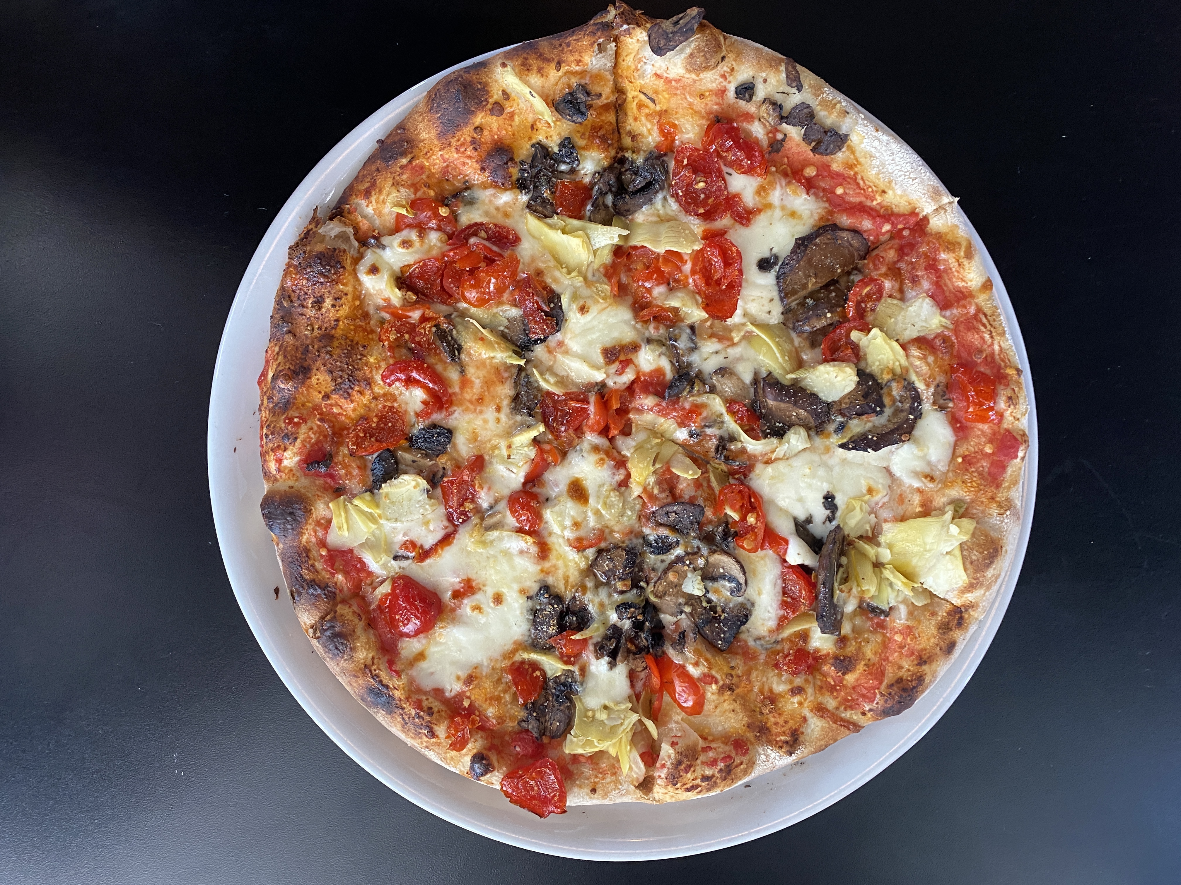 Vegetarian favorites include the Patrizia with red sauce, mozzarella, artichoke hearts, cremini mushrooms, and peppadew peppers, a South African variety that is small in size but packed with both sweet and spicy flavor notes at the same time. The meatier Divina combines those same peppers with both prosciutto and sopressata. While most of the pies involve tomato sauce, a favorite white pizza is the Biaggia, which mixes the tastes of fig jam, prosciutto, goat cheese, arugula, shaved parmesan, and lemon olive oil with the usual fresh mozzarella.