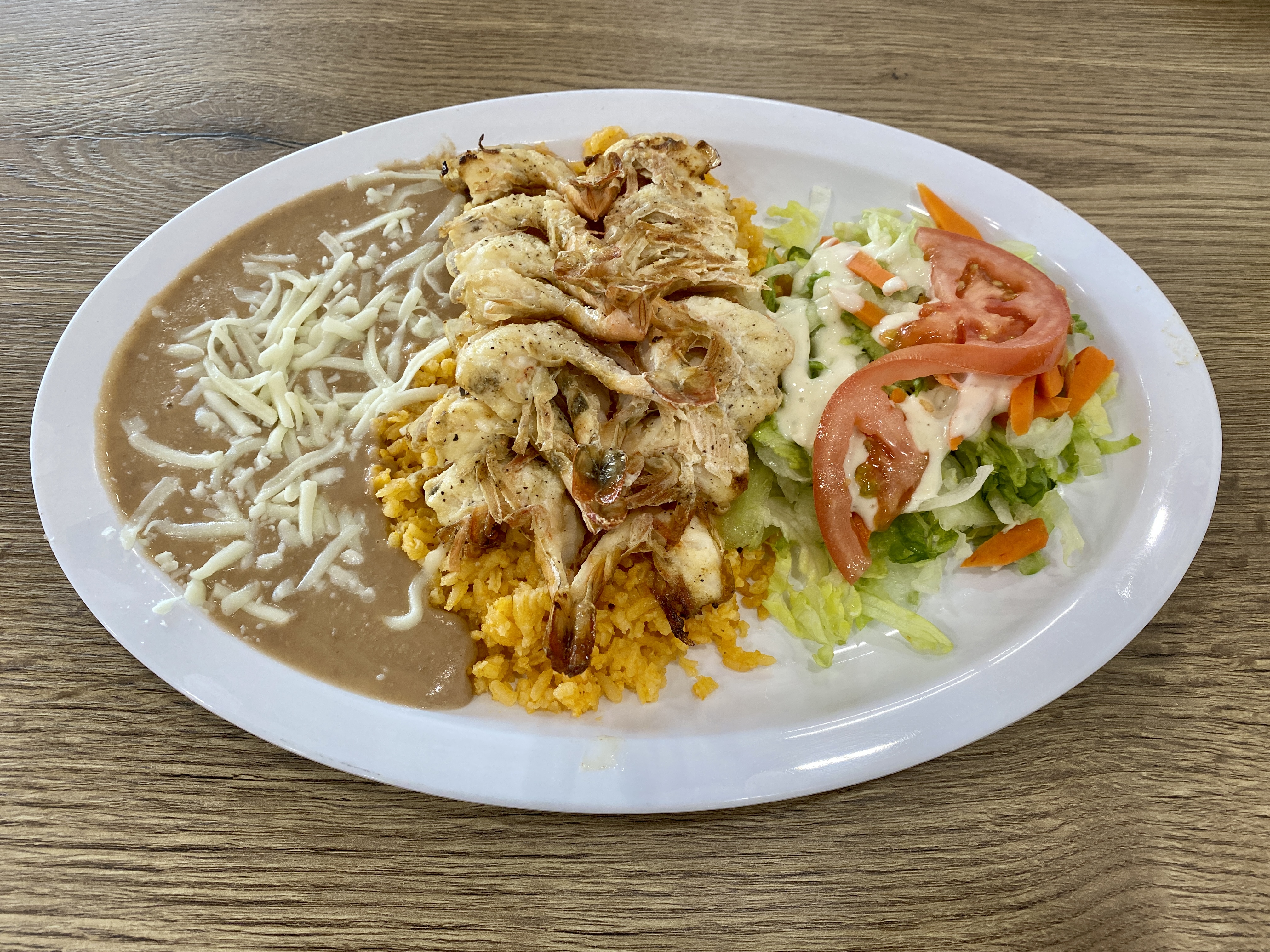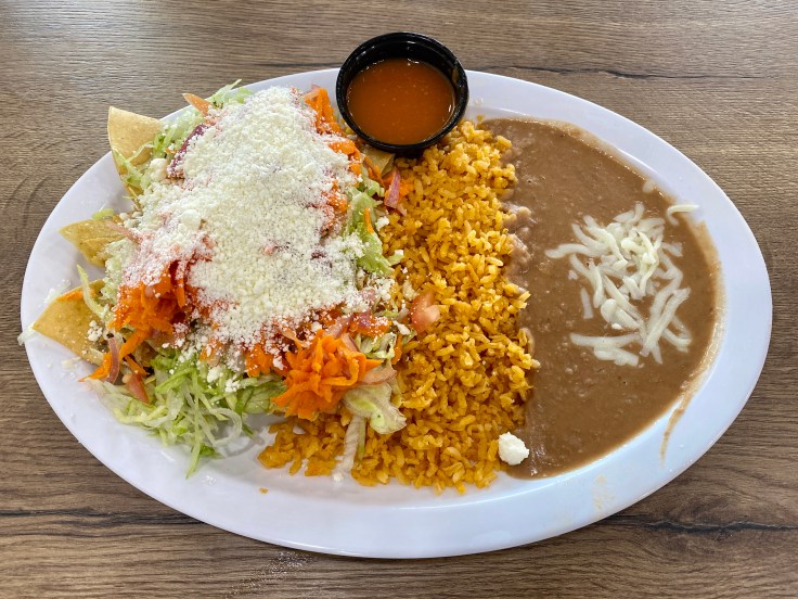 Shredded beef and chicken are the two fillings for dishes that require a bit more preparation. Interestingly, the rolled tacos are identified as flautas rather than the synonymous word taquito found in the restaurant’s name. A similarly prepared dish with a different shape is the tacos durados. These hard-shelled tacos, like the flautas, are served as part of a combination plate with a salad of shredded lettuce under cotija cheese. The enchiladas feature the same filling choices rolled into soft tortillas and baked with a red sauce and a topping of melted cheese.