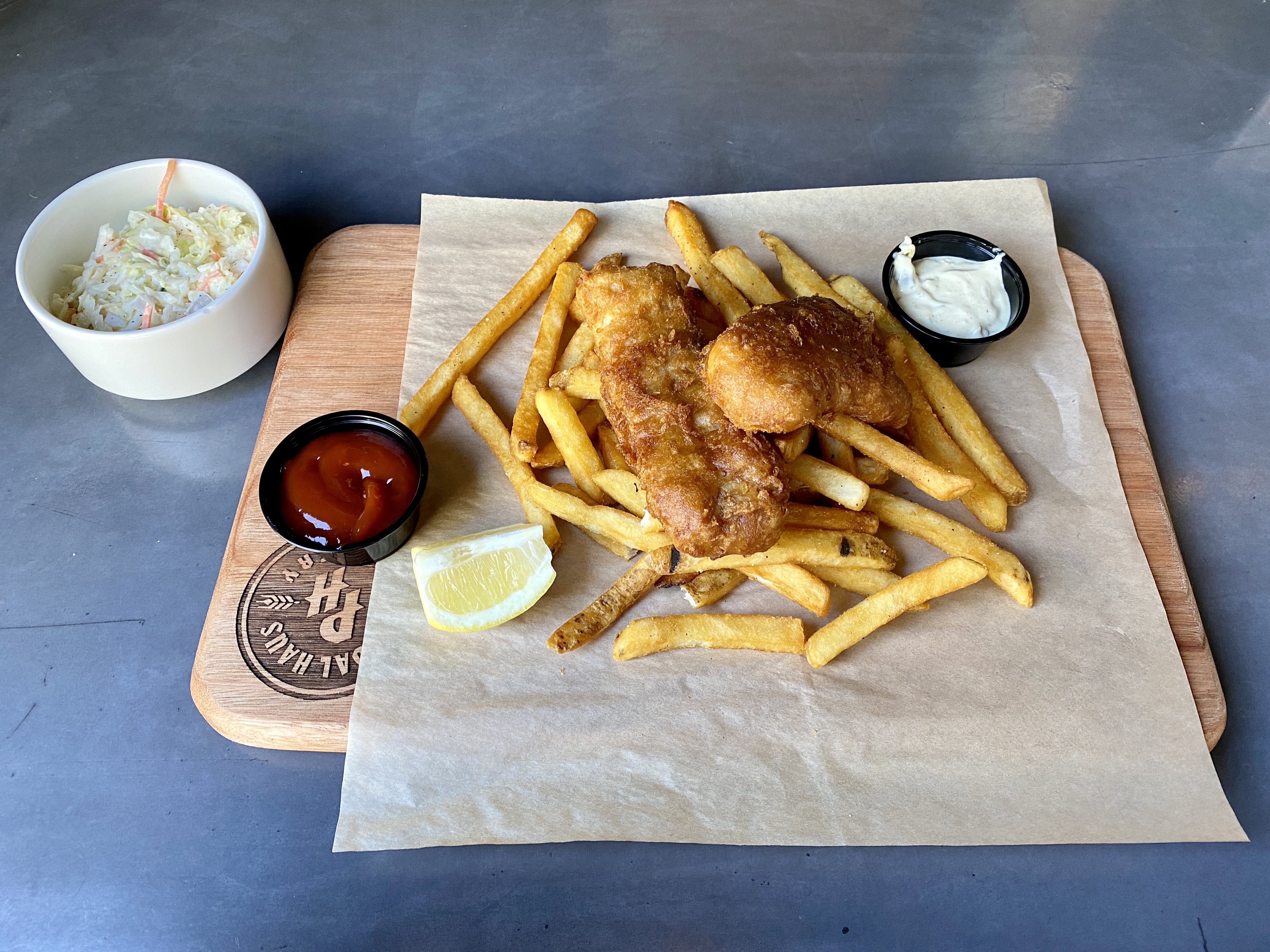 Standout entrees include the fish and chips with two (upgradeable to three) slabs of cod with a relatively light tempura batter and fries. In this case, some slaw seems a worthwhile addition. Seasonal entrees that emerge during the winter months might include a chicken pot pie or a ground beef shepherd’s pie. Lighter options with a more summer-like feel include the Thai peanut shrimp salad on a bed of soba noodles and the smoked chicken and kale salad with pulled poultry over a mix of cruciferous greens with feta cheese and marcona almonds.