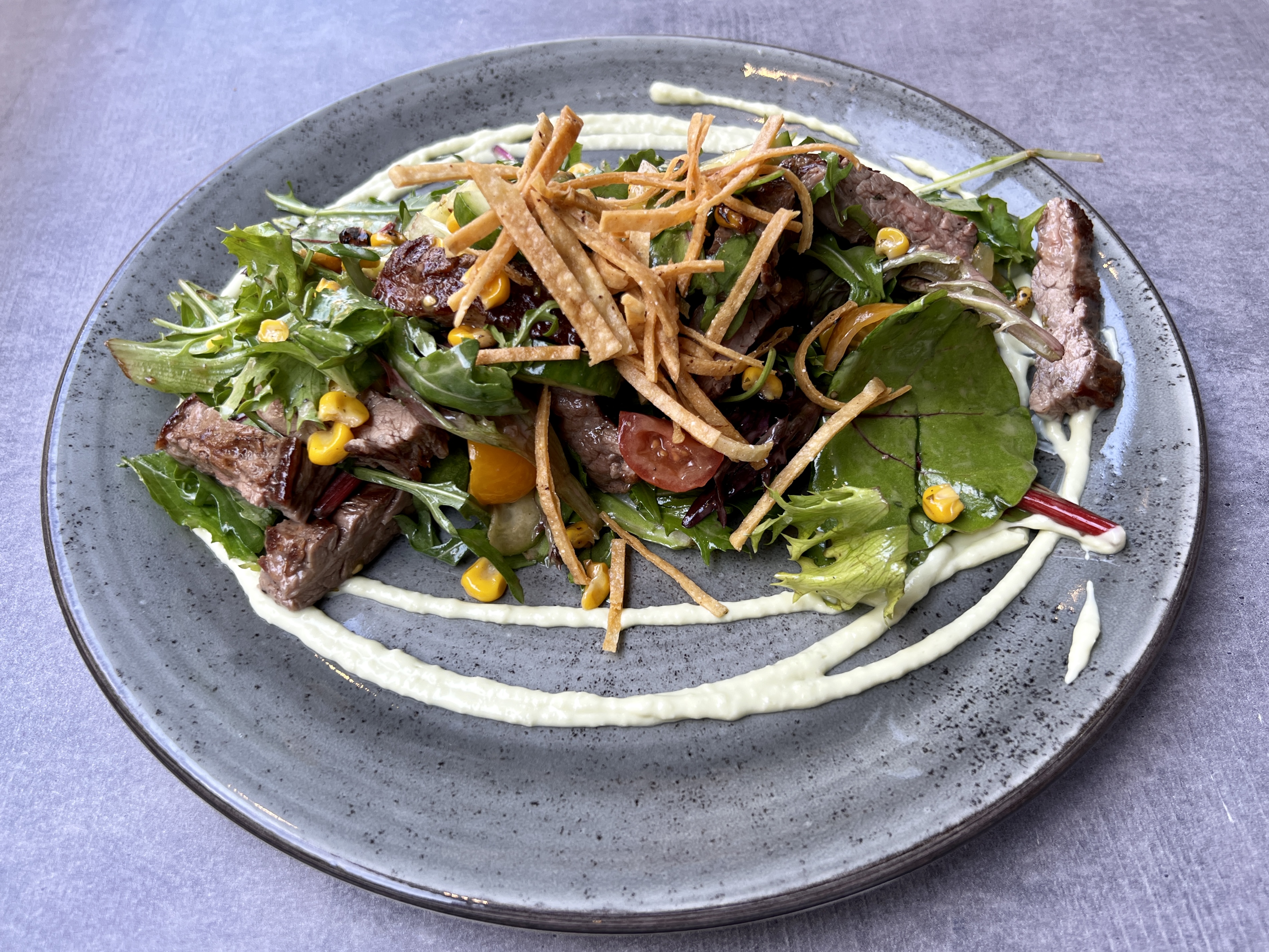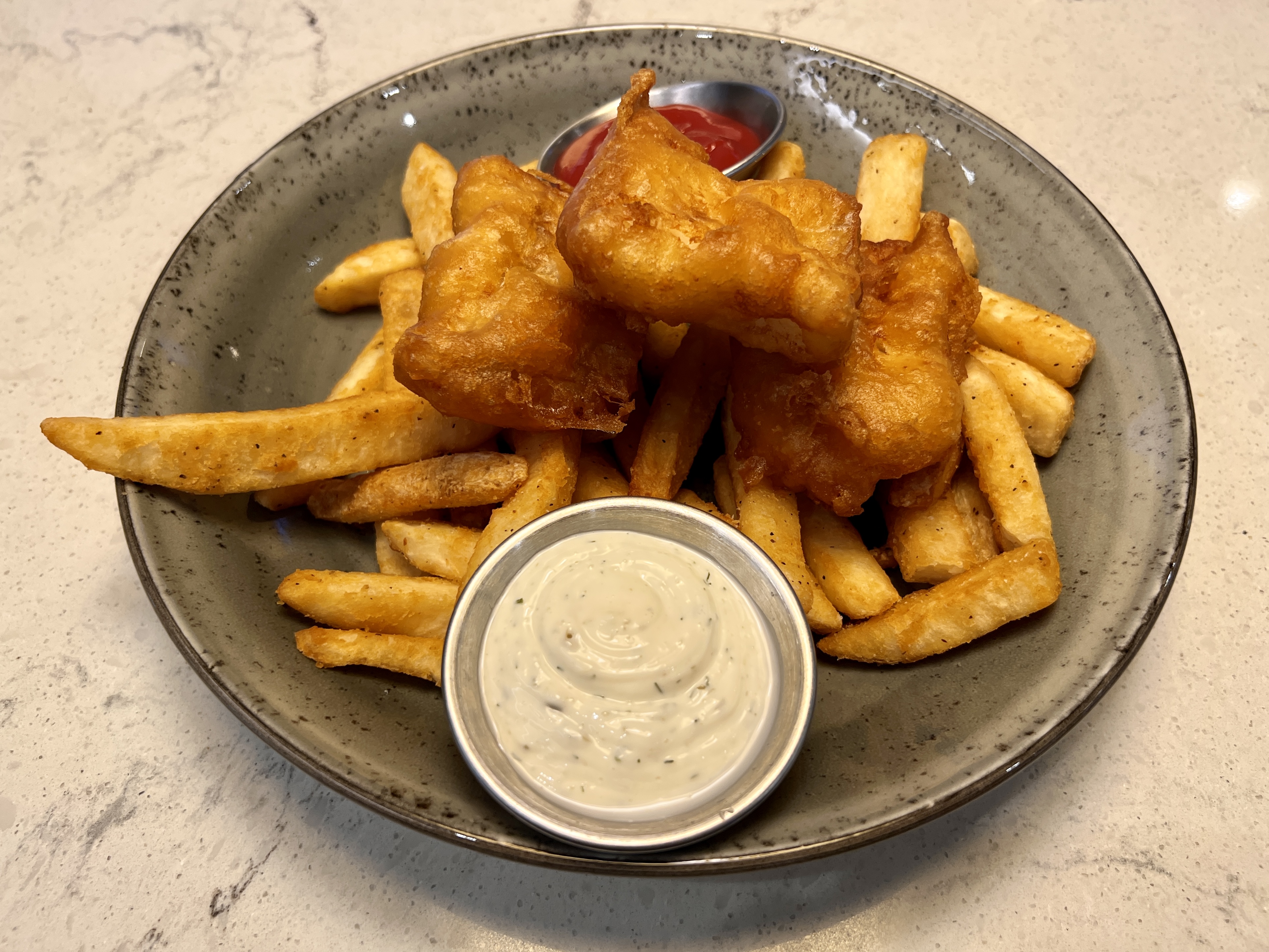 The restaurant space blends seamlessly with the hotel lobby with only the host station clearly defining the threshold between the two spaces, and neither is terribly exciting in terms of decor or design. This is a solid citizen business hotel and not a resort or boutique property designed to impress with a trendy look or ambience. That said, it’s a pleasant environment, and the patio along Adams Street is a comfortable venue for outdoor dining. Inside, there’s a linear bar against the back wall, some traditional tables, and a few lounge style seats with big chairs.