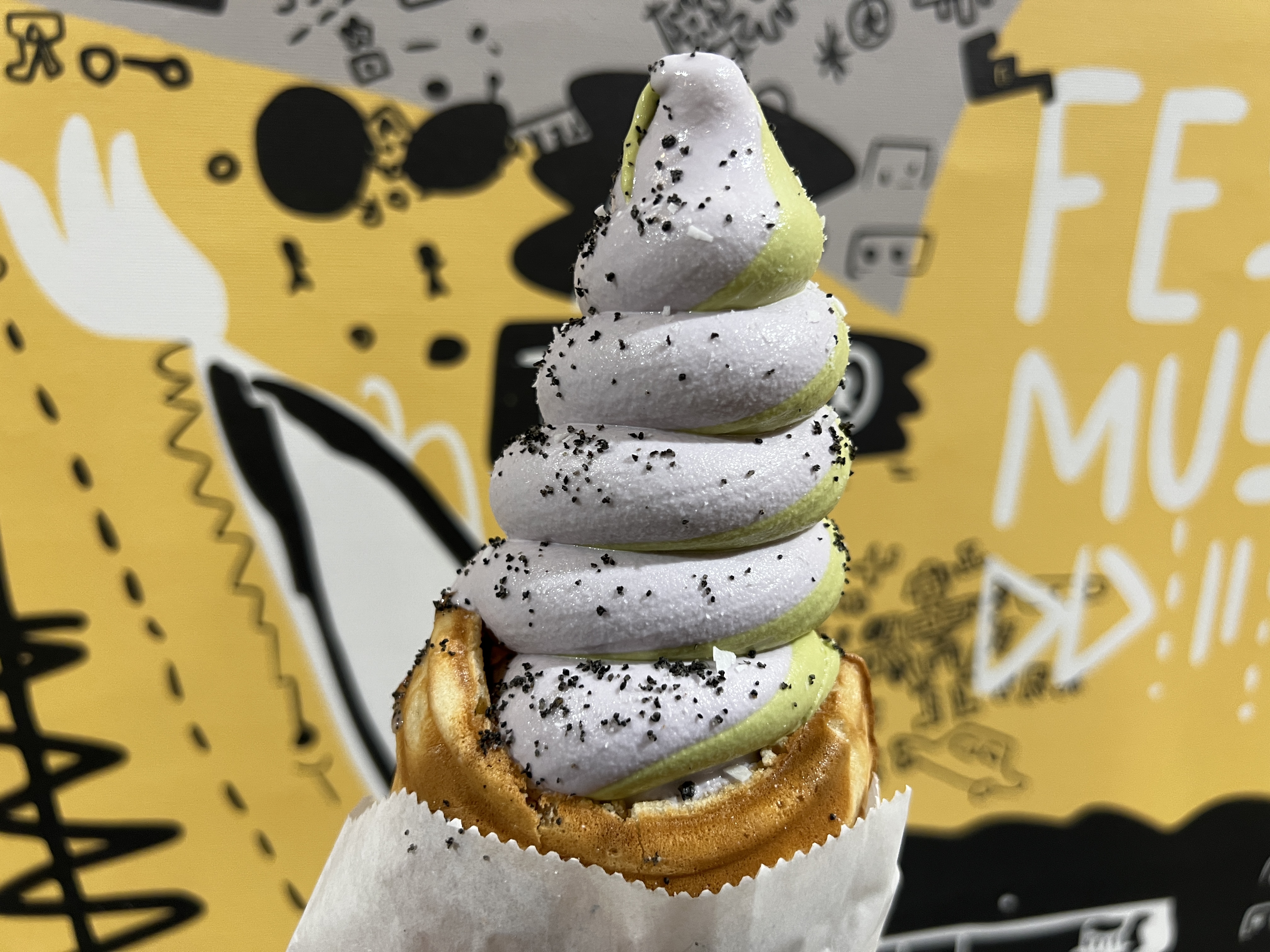 The shop’s other distinctive dish draws from the Japanese tradition of taiyaki, soft fish-shaped cakes that can be used as ice cream cones. Customers can order a fish cone that is first filled with Nutella, custard, or red bean paste and then topped with vanilla, chocolate, matcha, or taro ice cream and the finally accessorized with topping such as Oreo crumbs, black sesame, or coconut flakes. A few other items identified on the menu as “signature creations,” including Choco Heaven and a banana split, involve taiyaki that serves as the base of a sort of sundae.