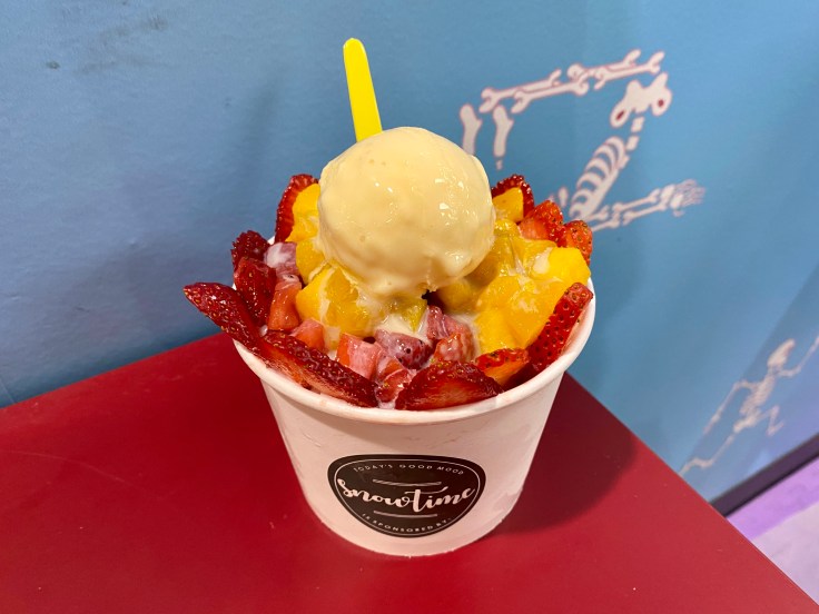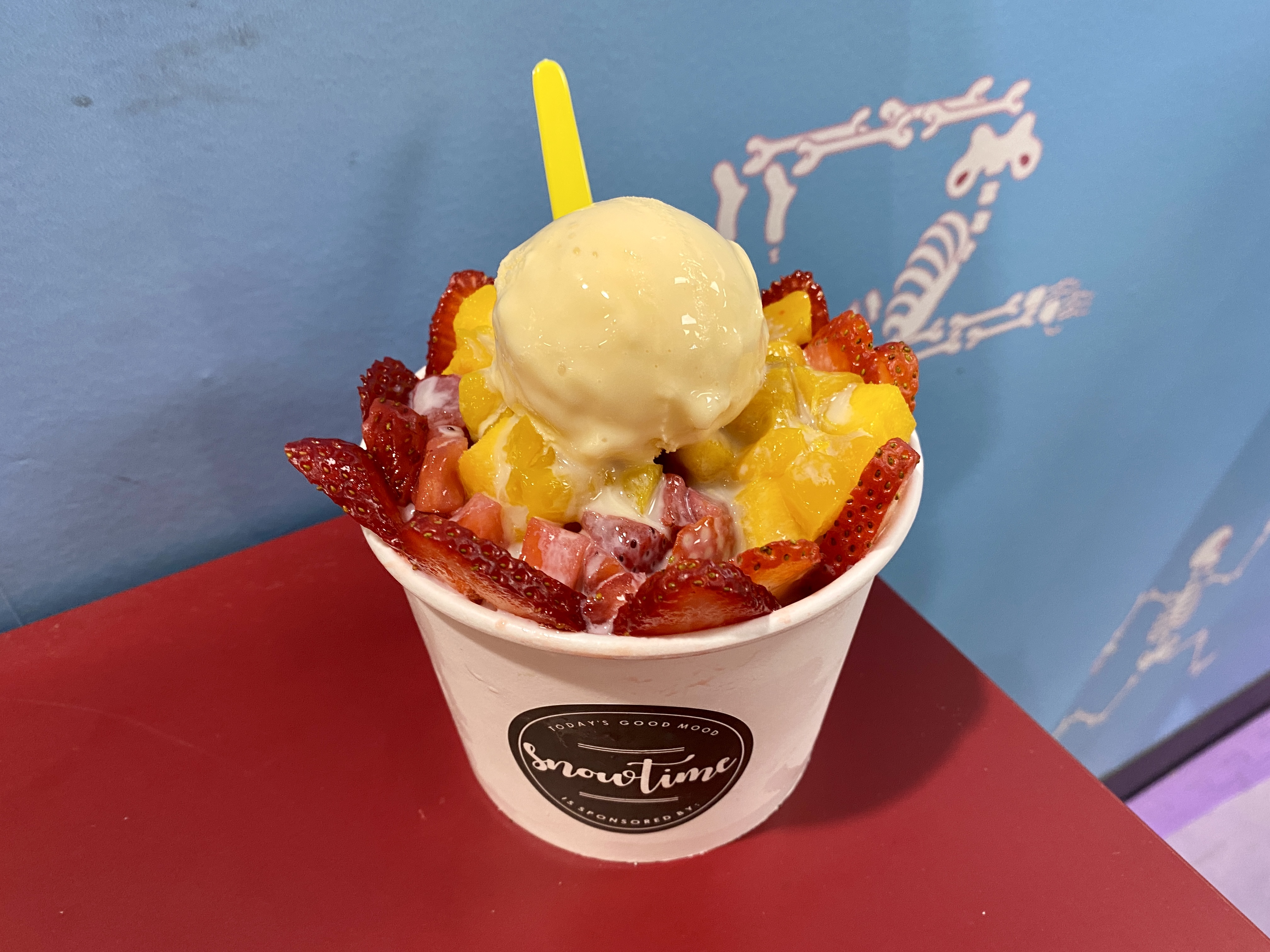Living up to its name, Snow is primarily about snow, an east Asian confection in which thinly sliced ice with a texture similar to actual snow is combined with ice cream, condensed milk, and toppings. The Korean version of the treat is known as bingsu, and Snowtime offers its own flavor combinations such as Sweet Sunset with a combination of mango and strawberry or Matcha Love with the distinctive green powder combined with red beans and mochi. Seasonal flavors like caramel apple add other toppings in a celebratory mix of cultural influences.