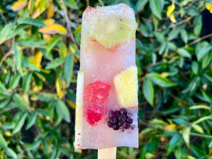 The popsicles are produced by the same kitchen that serves the hotel’s poolside restaurant, Lylo Swim Club, and are strongly influenced by the Mexican tradition of paletas, frozen treats on a stick that incorporate fresher ingredients than most mass produced popsicles. This often means chunks of actual fruit rather than just a fruit flavoring or puree. The selection changes daily but always incorporates a mix of three categories: fruity, dairy, and boozy, all of which are self-explanatory, although with some of the flavors there can be crossover between types.