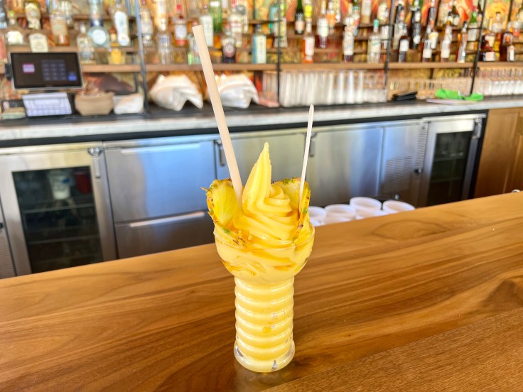 Opposable Rums is typical of this approach. The tall drink combines two styles of rum with fresh pineapple and lime juice and a grapefruit-cinnamon syrup. Dual rums also play a role in a cocktail that straddles the boundary between drink and dessert. The Dole Whipped is a generous serving of the pineapple soft serve popularized at Disneyland, but it’s infused with one style of rum before being topped with another version of the same spirit and then garnished with fresh fruit. The result is a flavor profile that evolves as one dives deeper into the dish.