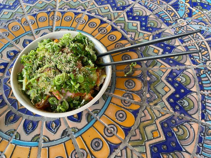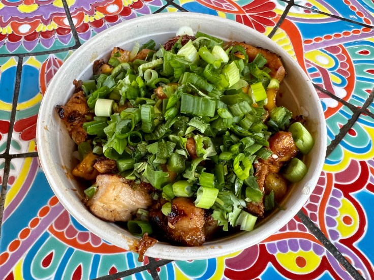 Entrees fall into categories of “bowls” and “bigger bites.” The former are rice bowls with toppings like Korean BBQ beef, huli huli chicken with grilled pineapple, and a vegetable teriyaki that can be accessorized with chicken or beef for an added charge if desired. The other bowls all reflect the poke bowl tradition of Hawaii with raw fish options including ahi with cucumber and red onion, spicy tuna with avocado and jalapeño, and garlic salmon with chunks of fresh mango and maybe just a bit too much creamy ponzu sauce sometimes obscuring the flavor of the fish.