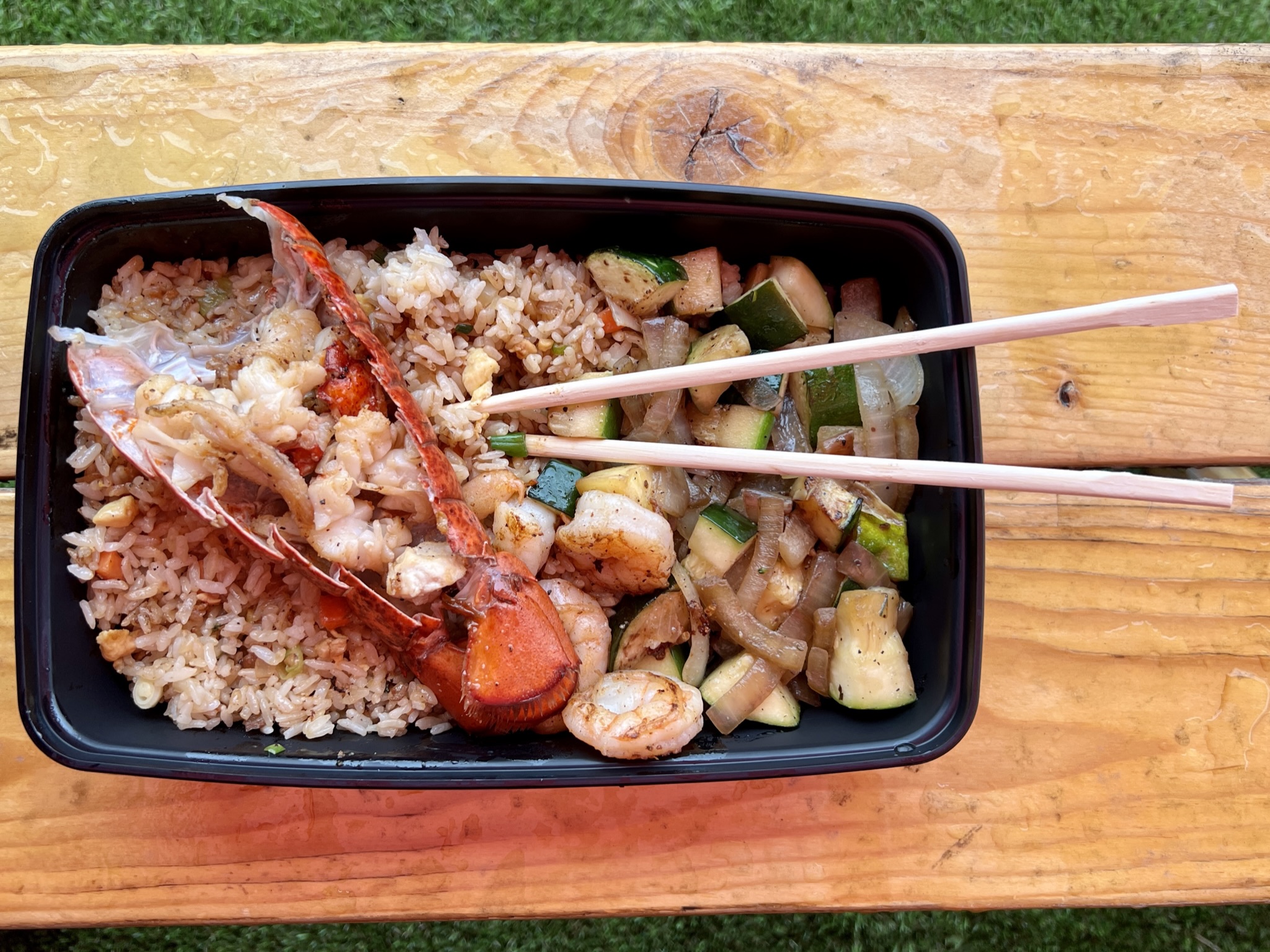 The meat choices are chicken, beef, salmon, shrimp, scallops, and lobster. Each one is featured on its own in various sauces, as well as in combinations like the EZ Trio, a lunch bowl featuring filet mignon, chicken, and shrimp, and the EZ Choice, a bigger entree that combines filet, lobster, and shrimp. The menu brags that the latter item is the most popular. At nearly $40, that seems a stretch, but most items are priced a half that level and worth the money for the quality of ingredients and preparation, even if they’re enjoyed at picnic tables with a view of I-17.