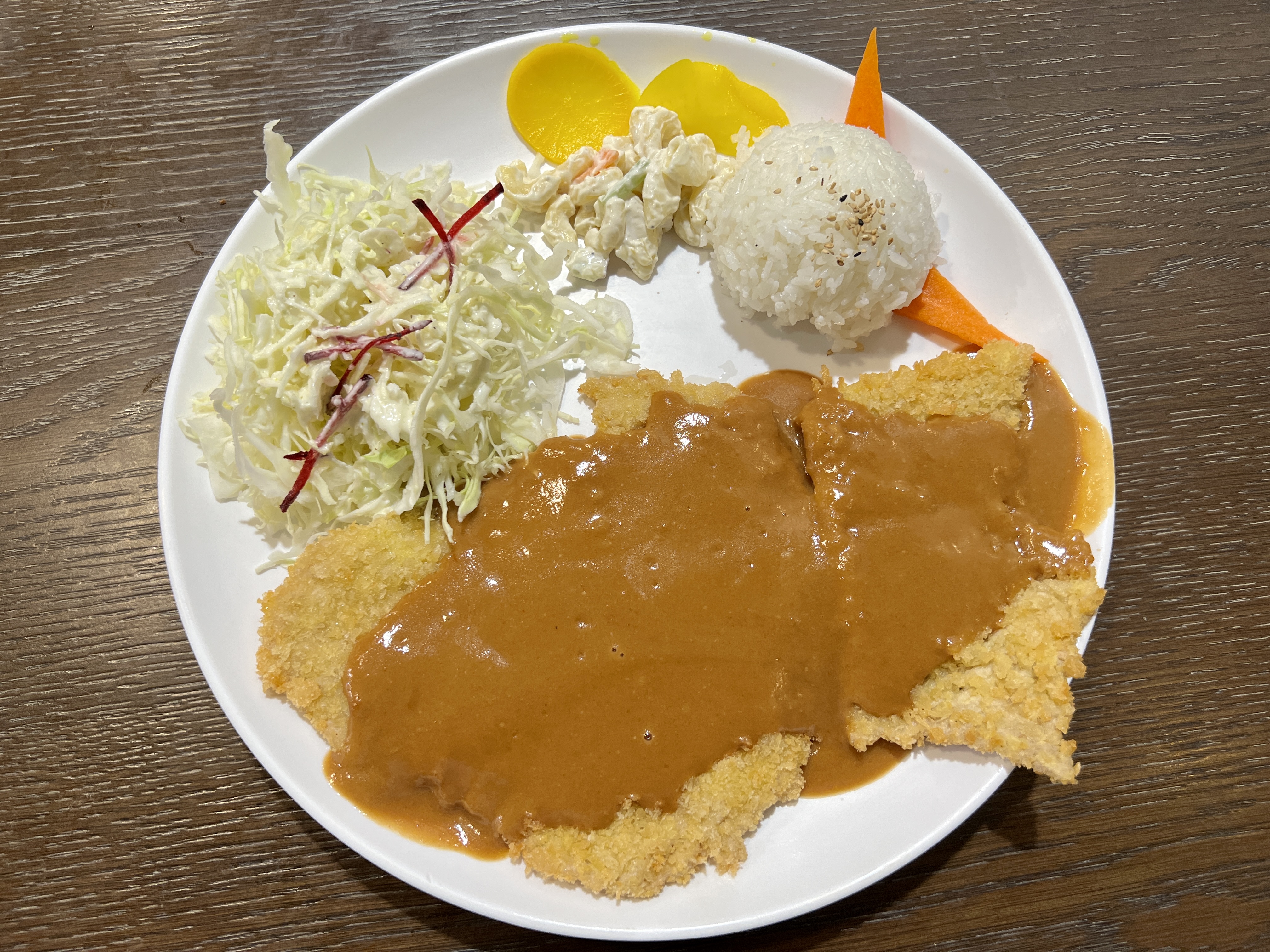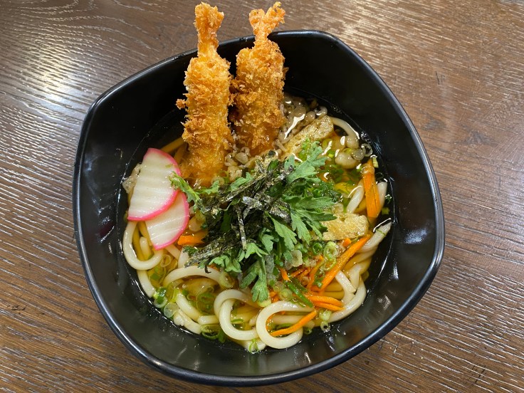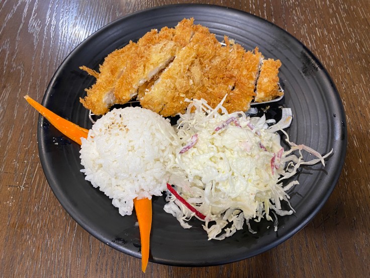 An additional choice is udon, thick wheat noodles in a soy-based broth with a choice of either fish cakes or tempura shrimp. For anyone torn between the noodle and the katsu halves of the menu, there is also the choice of a combination of katsu with udon. A cutlet of either meat is paired with a smaller bowl of noodles, as well as the usual katsu sides. Finally, for those who wish to enjoy the katsu in a lighter format without the added carbohydrates of either rice or pasta, a simple katsu salad is a plate full of greens topped with a crisp cutlet of pork or poultry.