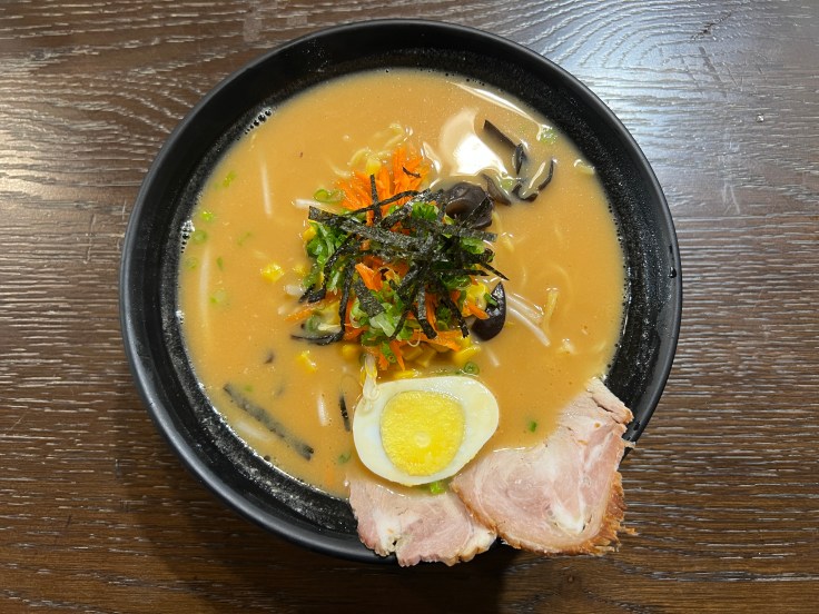 If katsu is the main attraction on this menu, the co-star is Japanese noodle soups. There are four varieties of ramen available, all with a pork base but with different topping and flavors. Tonkotsu and yashai bowls both feature a milky, almost white broth while miso has the familiar taste of fermented soybean paste, and tantanmen adds a note of spice. All bowls of ramen come with slices of pork chasu, a boiled egg, slivers of seaweed, and some vegetables in the soup. The one meatless dish is a bowl of cold soba noodles served with vegetables in broth.