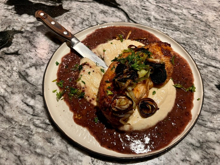The relatively succinct food menu also incorporates items as meaty and timeless as a pork chop with black garlic and apple slaw and a ribeye steak with horseradish crema. For customers not inclined towards so much meat and dairy, a vegan cabbage newburg entree is an alternative. One surprisingly effective vegan touch is found not among the entrees, but instead on the dessert menu, where a lemon meringue dish is the unexpected star. The dollops of meringue are fashioned with aquafaba, the water drained from canned chickpeas, rather than egg whites.