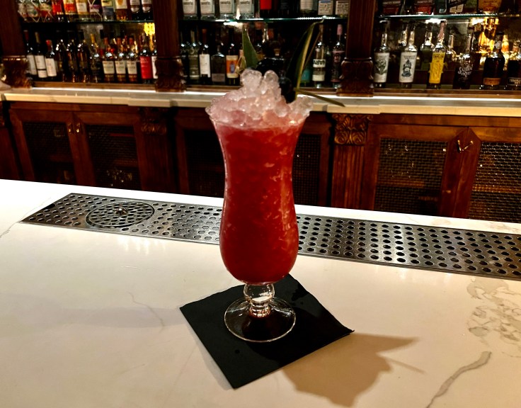 Although the lemon dessert is the assertively flavored champion here, a s’mores cake and a cotton candy pot de creme both offer somewhat sweeter and more conventional approaches to ending a meal at Rough Rider. Regardless of which dessert is chosen, it’s also worthwhile to include a cocktail or two when budgeting either dollars or calories. Although the specific drinks change periodically, the categories on the bar menu are consistent. “Cobblers” are refreshing and powerful beverages that incorporate fruit preserves and crushed ice served in tall glasses.