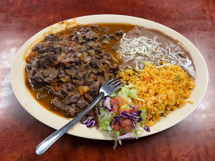 With the word “tacos” in the restaurant’s name, that seems like an easy place to start exploring more of the restaurant’s menu. Tacos mi Ranchito offers street tacos sold on a la carte basis with house meats that emphasize beef in the form of carne asada, lengua, and cabeza. Pork is also represented in al pastor and carnitas preparations, and there’s chicken available as well. These tacos also serve as the foundations of combination platters in which slightly larger tacos, either soft (suaves) or fried and crunchy (dorados) are paired with rice and refried beans.