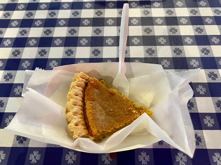 While chicken is clearly the primary emphasis here, a second strength is found in the pies. Gus’s serves five fillings within a flaky crust: chess, chocolate chess, coconut, pecan, and sweet potato. The first item is a Southern specialty that has a simple filling of eggs, sugar, butter, and a little flour, resulting in a texture similar to cheesecake, but without cheese as an ingredient. All pies can be served with a scoop of vanilla ice cream, and that frozen dessert is also used in root beer floats, straight or spiked, the only non-pie choice on the restaurant’s dessert menu.