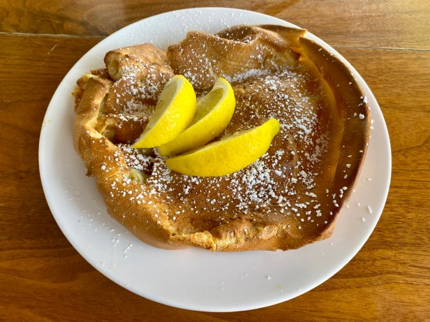 Beyond basic pancakes, Elly’s extends its reach with crepes. These supple, foldable creations come with the same topping combinations as the buttermilk pancakes with the mascarpone and Nutella options being particularly effective enhancements when used inside the crepes. Another pancake variant are the baked pancakes, large shareable dishes that take a bit longer to prepare but offer an entirely different texture. The basic model is anointed only with powdered sugar and lemon wedges while the cinnamon apple version incorporates fruit and spice.