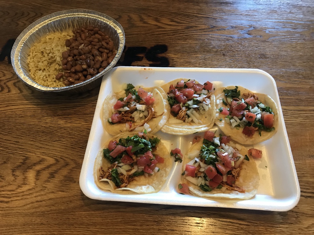 A few small tables outside offer an appealing option for customers who prefer outdoor dining, and since almost everything is packaged to go, the restaurant works equally well for takeout. Orders are taken at a counter, and food is prepared in a small open kitchen behind. The overhead menus begin with about a dozen basic meat fillings. Essential taco fillings such as carne asada, tinga, and carnitas are generally offered in both typical and spicy, tangy variations such as asada ranchero or vinagretta chicken. Birria is the latest addition to the menu.