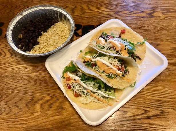 All are worth exploring, but two standouts are the barbacoa and the tinga chipotle chicken, both distinguished by their tender textures and nuanced flavors. A selection of seafood fillings at the bottom adds choices such as shrimp and fish. Elsewhere, the menu displays various combo meals that can be built with any of the proteins in various formats. Flour tortilla tacos have a larger diameter with two included in a meal with rice and beans, either whole pintos or black. Street tacos are made with smaller corn tortillas and come four to an order, also with sides.