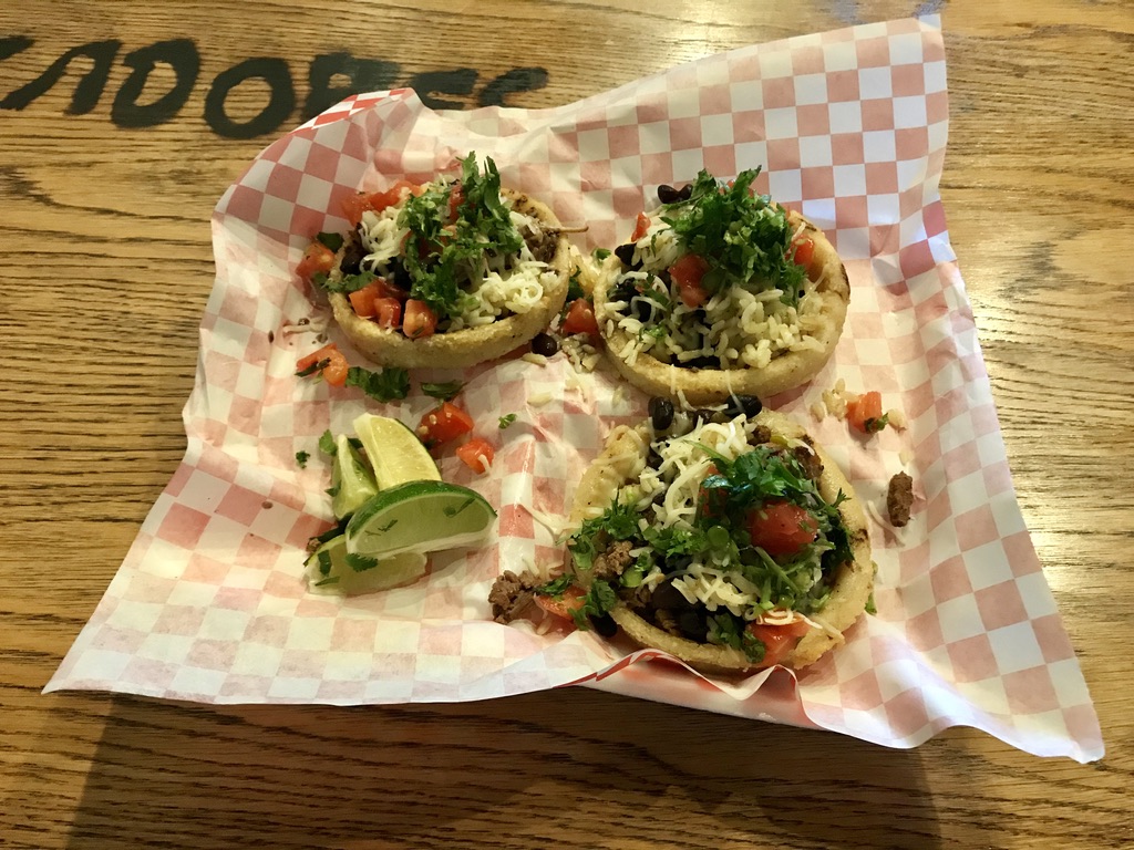 Additional options on the menu include familiar favorites such as enchiladas and quesadillas. The latter also comes in a smaller size known as “tacodillas,” mini-quesadillas that can be eaten with one hand and mixed-and-matched with one filling in one and a different filling in another. While much of the menu has a border feel, a menu item from more central and southern portions of Mexico is the sopes. These thick, concave discs of masa are fried and then served fresh and warm with a choice of meat, beans, cheese, and various garnishes on top of them.