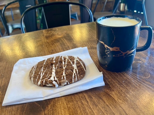 Acknowledging that for half the year cold beverages can be more appealing in a hot, dry climate, Stemistry also provides a range of frozen drinks such as an icy matcha latte and a chocolate peanut butter shake. In terms of food, Stemistry always has pastry on display and sometimes adds a few sandwiches. The cheesecake croissant is almost like a cannoli with a sweet, creamy filling barely contained within layers of flaky pastry. A molasses cookie has a bit of wintry spice accentuated by a lattice pattern of icing running back and forth on its surface.