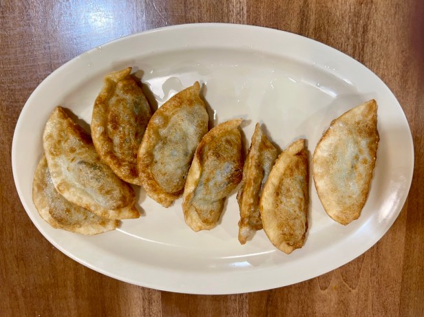 Appetizers include dumplings, served either boiled or fried. Of course, it’s possible to obtain perfectly good dumplings from numerous stalls in the food court, so focusing on a few more distinctive items makes sense. For added Korean flavor, kimchi dumplings are also available with spicy pickled cabbage mixed into the filling. An eminently shareable option is the seafood pancake. Served slightly smokey from the griddle, it features abundant scallions and seafood scattered throughout a sliced disc the size of a pizza with a chewy, slightly charred texture.