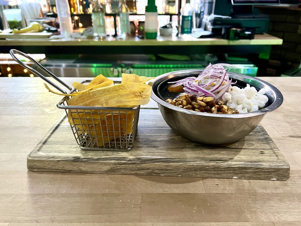 While the ceviche and tiradito offerings are by far the most adventurous fare to emerge from the kitchen, the opposite end of the taste spectrum is accommodated with a children’s menu with the likes of quesadillas and fries, prepared with the same protein options and degree of care as the adult items. Desserts include an aborrajado empanada stuffed with cheese and mashed plantain, as well as a shareable sweet sampler of banana empanadas, halved and presented with coconut gelato, drizzled with caramel, and topped with mixed berries on a single platter.