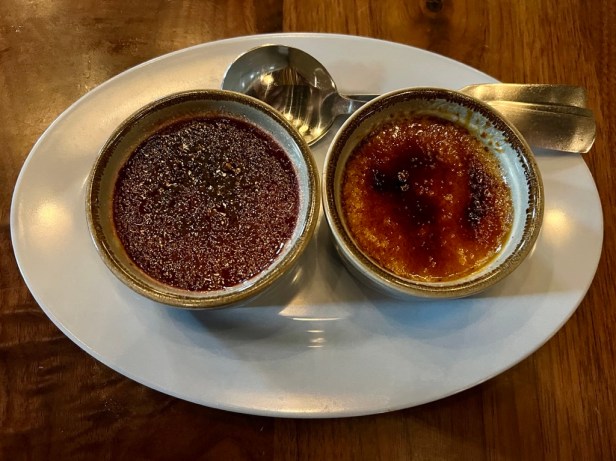 For dessert there are two offerings. One is a coconut ice cream sandwich enhanced with scotch, sticky rice, and peanuts. The slices of Wonder Bread encasing the frozen treat might make sense in a street food context but seem pointless on a plate. The creme brulee duo is more successful with a pairing of lemongrass and roselle (an African variation of hibiscus) as the featured flavors. The beverage selection focuses on natural wines and cocktails like Thunder’s pina colada, a classic given an unexpected but welcome savory kick with a bit of fish sauce.