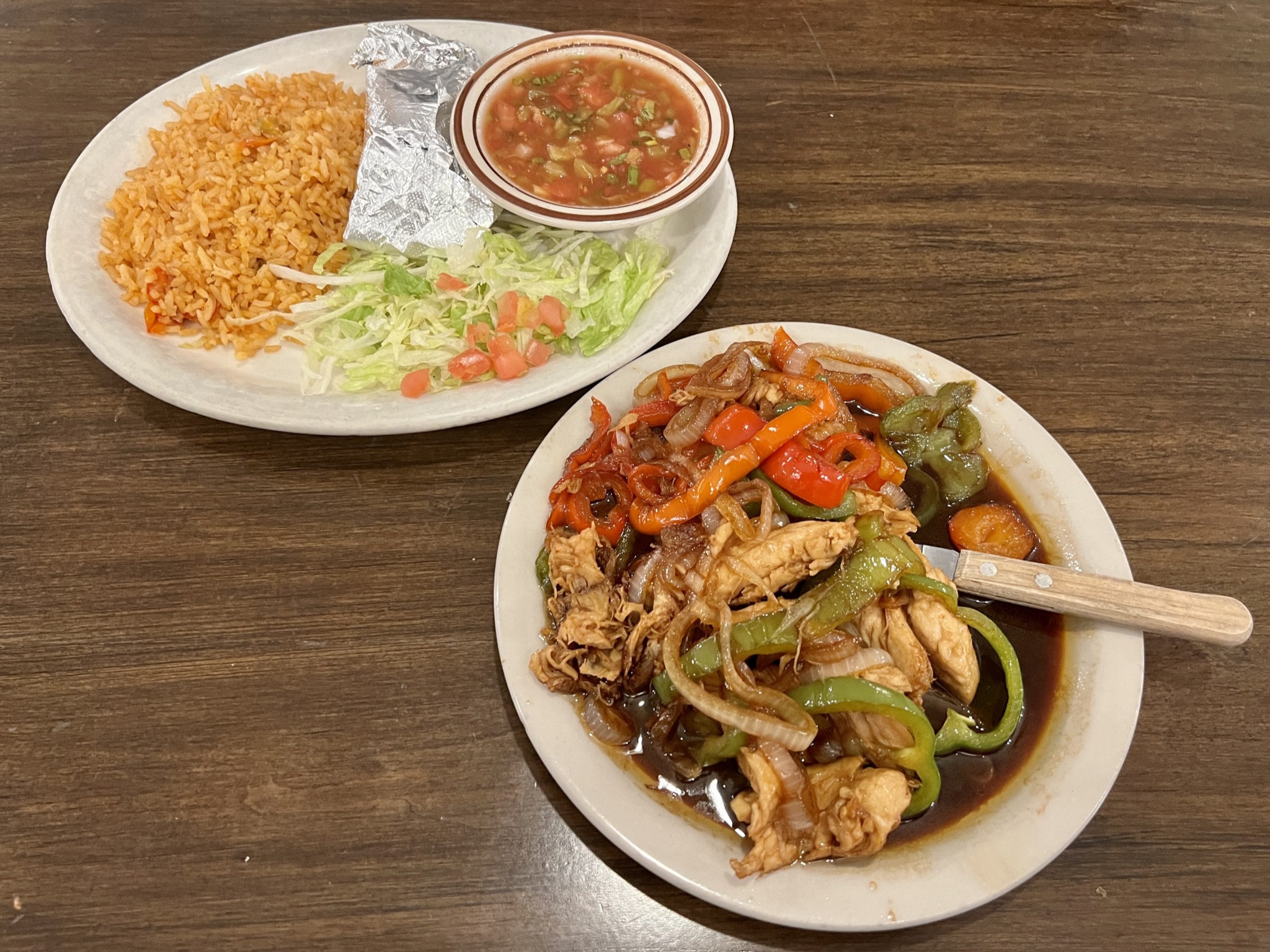 The “Especialidades de Ponchos” section of the menu includes some successes like the Sonoran enchiladas, masa patties that are fried and then covered in enchilada sauce with diced onions and sliced olives with option to add red or green chili beef. These hearty patties attain a balance between the underlying crispness of the masa and the tender meat and smooth sauce. The fajitas, on the other hand, fall short of expectations. There is no sizzling platter. That in itself is not damning, but the thin, dark sauce, reminiscent of soy, is out of place and unsatisfying.