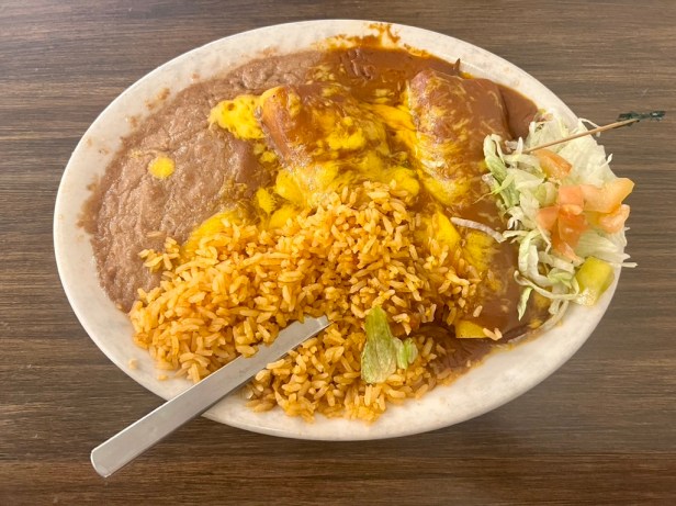 As expected, there are also numerous combination plates available with items like tacos, enchiladas, or tostadas – always with fillings limited to beef or chicken – served with rice and refried beans. With hard shells, minimally seasoned meat, iceberg lettuce, and tons of shredded yellow cheese, the tacos are probably the mildest and least threatening item on the entire menu. The enchiladas are noticeably more flavorful due to the sauce in which they are coated, and all of the burritos can be prepared enchilada style with the addition of sauce and cheese.
