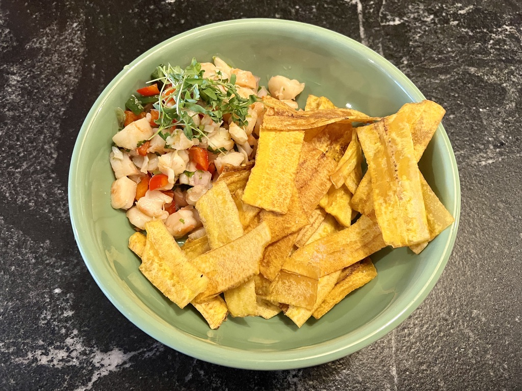 The ropa vieja at Coabana is tender and well-seasoned, even if it’s not as abundant in peppers and onions as might be seen in some versions. The small portion, served with rice and black beans, makes an effective light entree, but it’s a hard dish for a table to share as tapas. A meaty dish that does lend itself more to communal consumption is the masitas, pork marinated and fried in a manner similar to carnitas and served over guacamole with plantain chips for dipping. Those planks of fried green banana also come in handy for scooping the chunks of the tart shrimp ceviche.