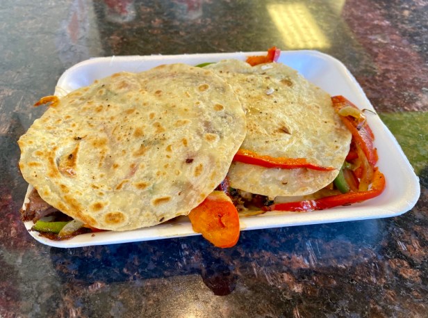 Although Taco Boys is clearly a meat-centered operation, there is a “vegetarian option” listed on the menu. It’s a cheese quesadilla with roasted onions. There’s also the option to order a bean and cheese burrito. For those not wanting an entirely meatless meal but desirous of some vegetables to balance the protein on the plate, there’s an option to upgrade any entree to “fajita style.” For a small charge, any burrito, taco, quesadilla, vampiro, or plato can be enhanced with grilled bell peppers and onions, adding plenty of flavor, color, and nutrients in the process.