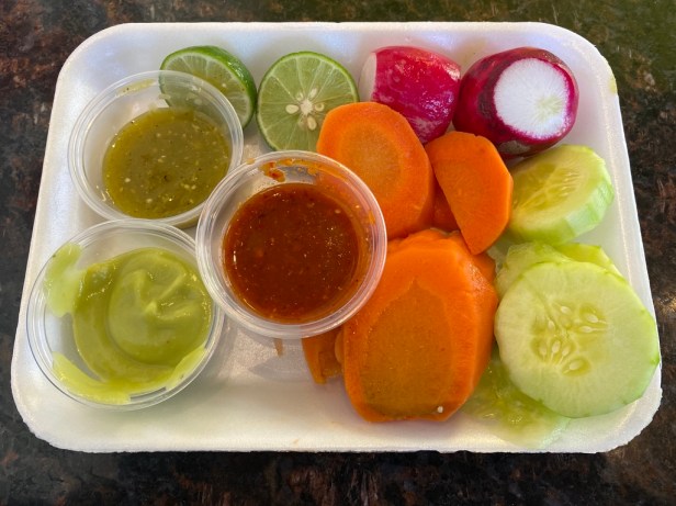 With so much bounty at the salsa bar, it’s possible to view a trip there as an appetizer course. Just dip some of those radishes, carrots, or cucumbers in the avocado dip while waiting for tacos. For dessert, there is a new partnership with Sunset Freeze, a local purveyor of frozen ices in flavors such as banana, horchata, and mango. The last option can be upgraded to a mangonada with Tajin, chamoy, and a tamarind straw. A tall, icy cup of aqua fresca like horchata or barley-based cebada helps extinguish the fire of the salsas. A bottle of beer can do the same.