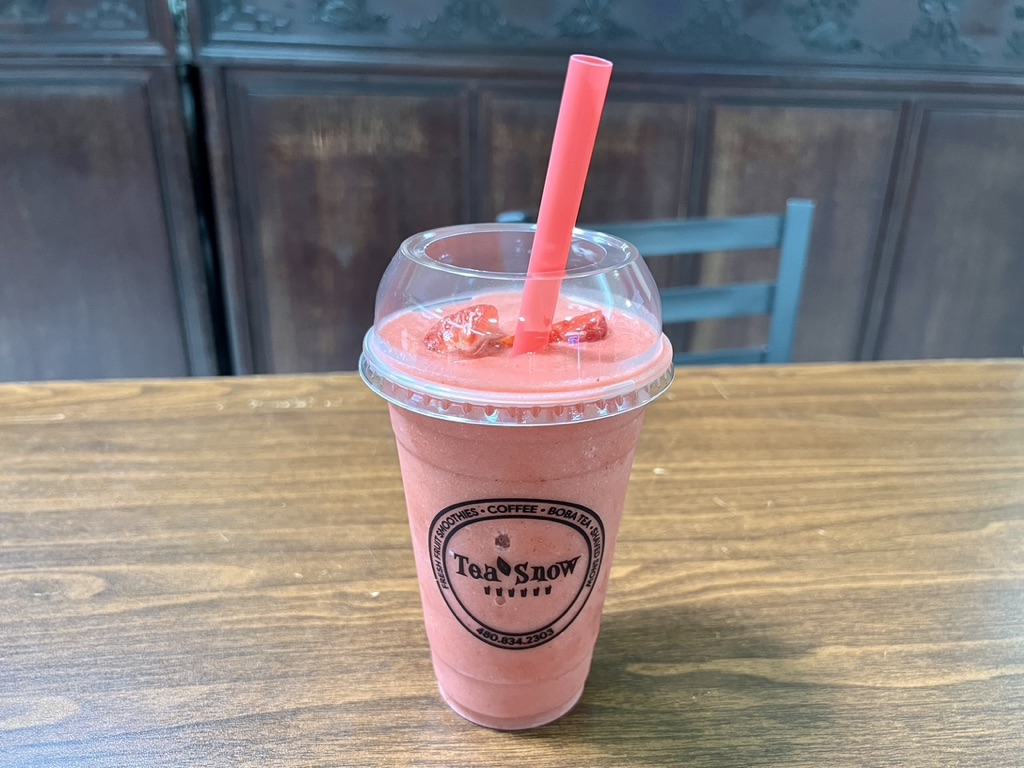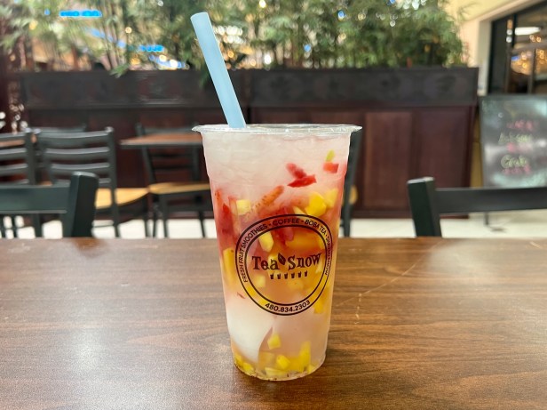 Tea Snow is sometimes also known as Tea Snow Boba or even Tea Snow Boba & Coffee. The most consistent branding on both signs and the website, though, is just Tea Snow. The shop is found in the heart of the Mekong Plaza Asian shopping center, a quarter mile west of Sycamore/Main station on the A Line in the Mesa Asian District. Once inside Mekong Plaza, look for Tea Snow near Tasty Pot and the food court. There are both interior and exterior entrances that lead to the counter where drinks and desserts are ordered from an extensive overhead menu.