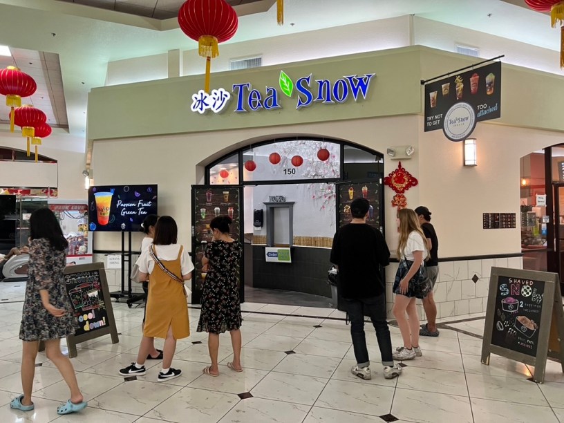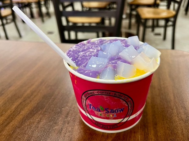 There are figures of speech about “dessert stomach” or “dessert goes in a separate chamber” to explain why people who feel satiated after a big meal can still find room for something sweet afterward. At the same time, many east Asian restaurants, especially Chinese and Vietnamese ones, offer little or no items that would be seen as desserts from a Western perspective. In both figurative and literal senses, obtaining dessert at Mekong Plaza often involves a separate space like Tea Snow, which serves its two namesake creations and a few other similar sweet treats.