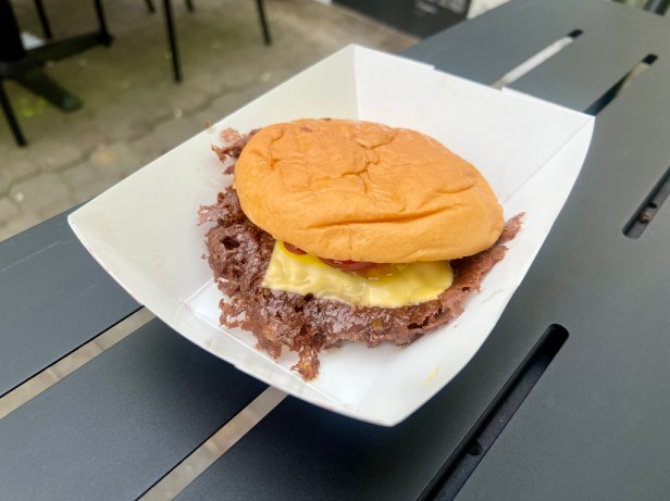 Beyond that duo, the menu has two other consistent items: an LA Burg, a version of the classic California burger with thin slices of pastrami over a single smashed patty with pickles, mustard, onions, and American cheese. In this case, as with many of the specials, the halves of the bun are inverted to signify that something is different about this burger. Where’s the Beef is a vegetarian burger which is not smashed and lands somewhere between falafel and a black bean burger. Satisfying as a meatless choice, it is the only burger here served in a sesame bun.