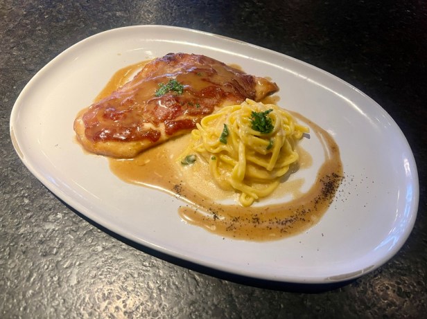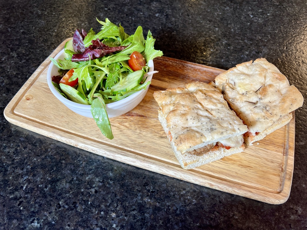 For the most part, Rosso relies on an all-day menu that extends from lunch into dinner; however, there are some midday sandwich specials offered. A meatball panini is built upon herbed focaccia with an airy, slightly crisp texture. The meatballs themselves are nuanced with sage as a prominent note that complements the melted cheese and tomato sauce. A chicken pesto sandwich is prepared with a thin breast piece that manages to evade the overcooking and dryness common in this situation. All of the lunch specials come with a side of chips or salad.