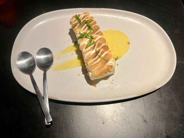 If the restaurant’s decor and entrees lean towards a red color scheme, the dessert section is focused on whites and lighter colors. Semifreddo limoncello is a frozen treat with tart citrus, nuttiness from almonds, and lightness from meringue. Classics like panna cotta with vanilla bean; tiramisu with cocoa, espresso, and mascarpone; and a New York cheesecake with berries are all choices here as well. Speaking of New York, one of the bar’s signature cocktails is Our Lady of Sing Sing, made with rum and sherry and perhaps named for the infamous prison there.