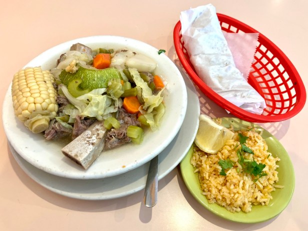 Tortillas are also provided as means of soaking up flavor from the soups and stews on the menu. Menudo and pozole are served every day. El Mesquite’s version of the latter is a familiar red version. It’s mildly seasoned but served with plenty of cilantro and onions for added flavor. Birria de chivo, goat meat, is also served daily, and it’s a simple, straightforward alternative to the gooey quesabirria trend, as much fun as that can be. Pata, or beef feet, provide the protein source in another adventurous daily soup, with their natural gelatin thickening the hearty broth.
