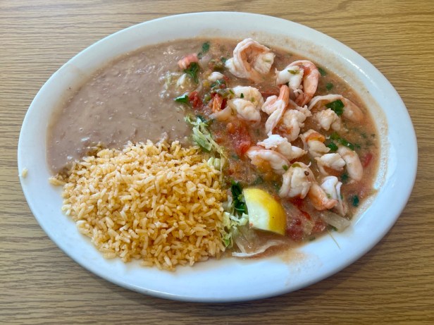 Other soups vary with the day of the week. Cocido de res, a hearty beef soup with corn, celery, carrot, cabbage, squash, and potato, is served every Thursday here. This is a soup to be eaten with the hands, not just a spoon. The meat is served on the bone, which seasons the stock. Chicken soup is available on Wednesday, and it’s an equally hands-on affair with pieces of bone-in poultry in a rich broth. Seafood is not a major emphasis here, but shrimp are available in both dishes like camarones rancheros with a tomato-based sauce and in a big bowl of soup.