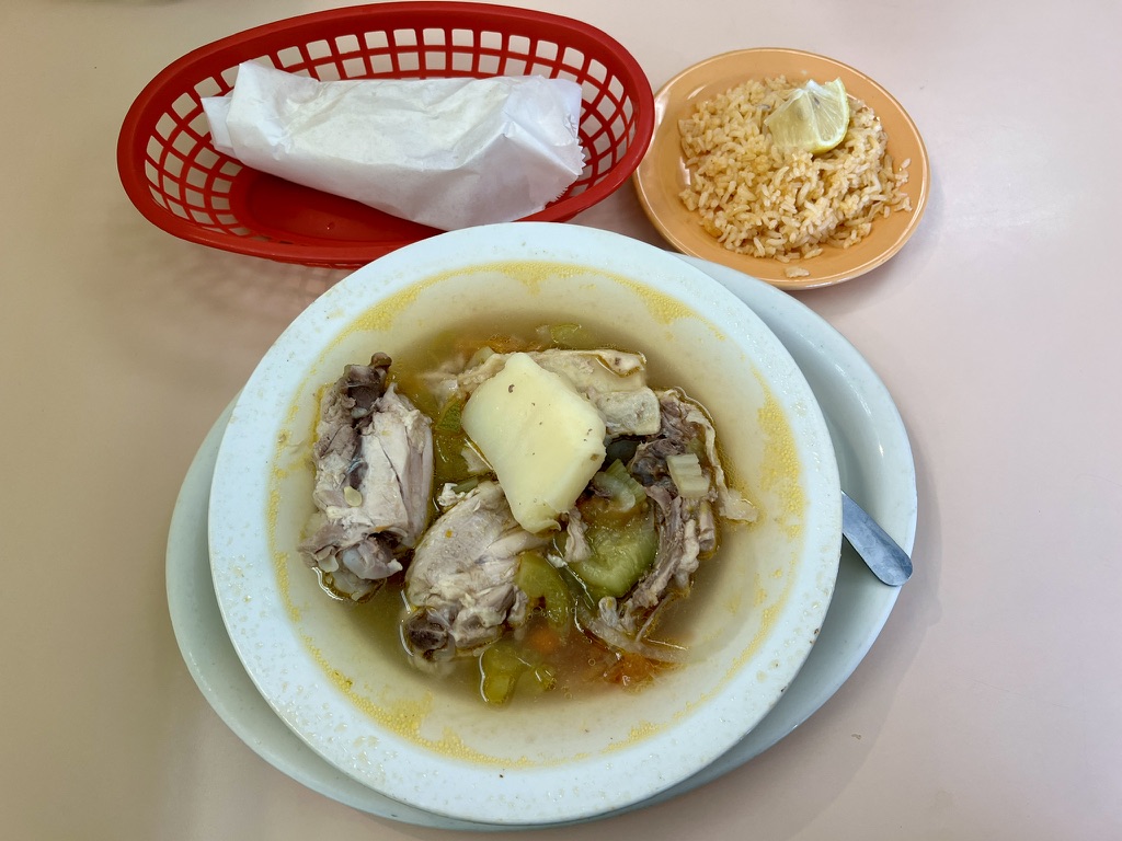 Other soups vary with the day of the week. Cocido de res, a hearty beef soup with corn, celery, carrot, cabbage, squash, and potato, is served every Thursday here. This is a soup to be eaten with the hands, not just a spoon. The meat is served on the bone, which seasons the stock. Chicken soup is available on Wednesday, and it’s an equally hands-on affair with pieces of bone-in poultry in a rich broth. Seafood is not a major emphasis here, but shrimp are available in both dishes like camarones rancheros with a tomato-based sauce and in a big bowl of soup.