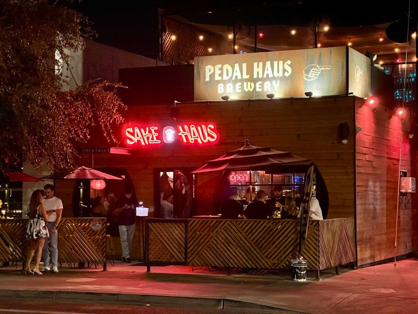 Sake Haus is part of the Monorchid building, a structure it shares with its much larger siblings Pedal Haus and Kahvi. The sushi spot is the smallest in the complex, and it’s found three blocks east of Roosevelt/Central station on the B Line. Shaded bike racks are found outside the apartment building just across the alley. A narrow patio faces Roosevelt with a host station positioned outside the door to the interior space that lies beyond. Inside, there are two dining rooms: a smaller front one with an open kitchen and a larger rear one that is home to the bar.