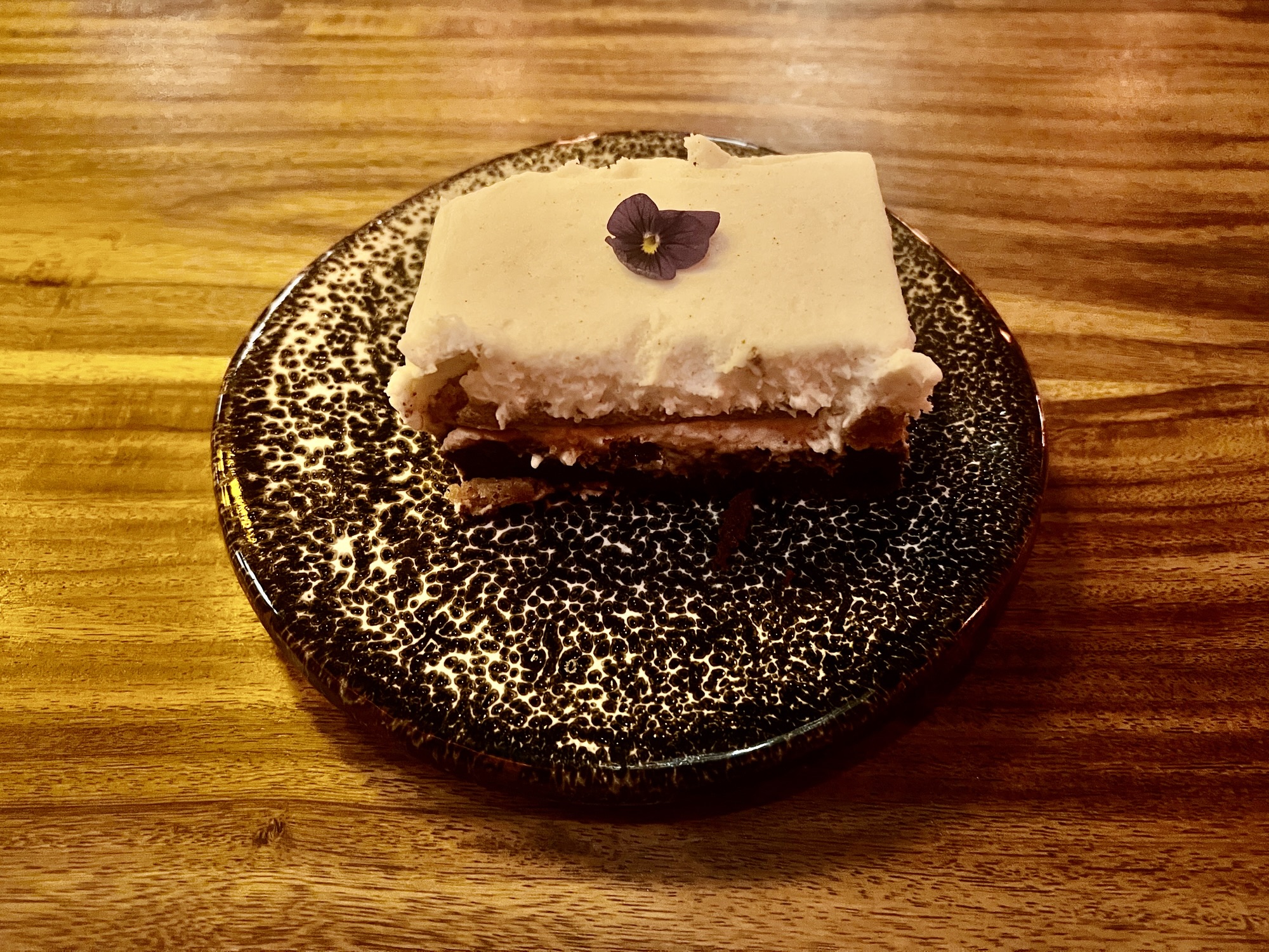 While the rolls and nigiri rely on rice as a base, a few dishes described as “chef’s specials” are focused more on letting the fish speak for itself in a sashimi-style presentation. The Orange Blossom is a simple dish of sliced salmon with notes of acid from tomato oil and caramelized orange segments. There is no regular dessert listed on the menu, but the specials board occasionally offers a treat like a recent chai tiramisu. With a more chocolate-driven base layer than a typical tiramisu, it’s probably a good choice for people who think they don’t like tiramisu.