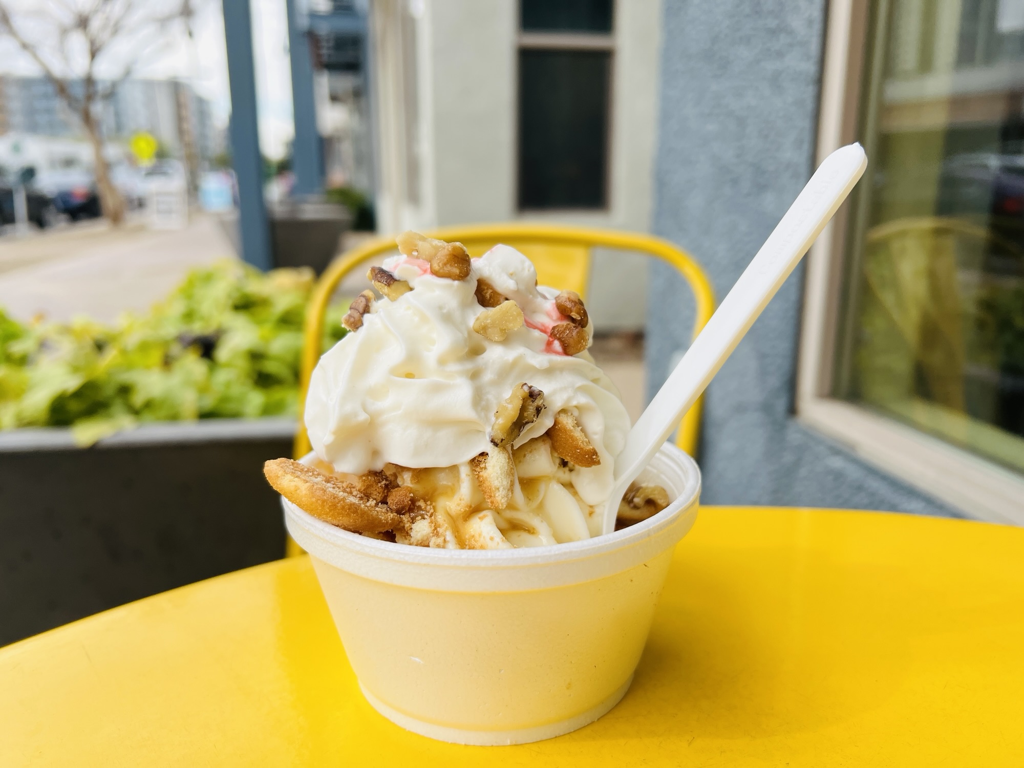 RoRo Dogs’ approach to dessert is soft serve, offered in vanilla, chocolate, and of course a twist of the two. A small cone is one option, but there are also root beer floats and several creative sundaes with toppings such as walnuts, vanilla wafer, Oreos, and chocolate sauce. Drinks are limited to canned sodas and bottled water, but another option is to walk the hot dog half a block to Greenwood Brewing to enjoy some beer with it. Thanks to mixed use development and places like RoRo Dogs, it’s now possible to eat live, work, and eat hot dogs on the same block.