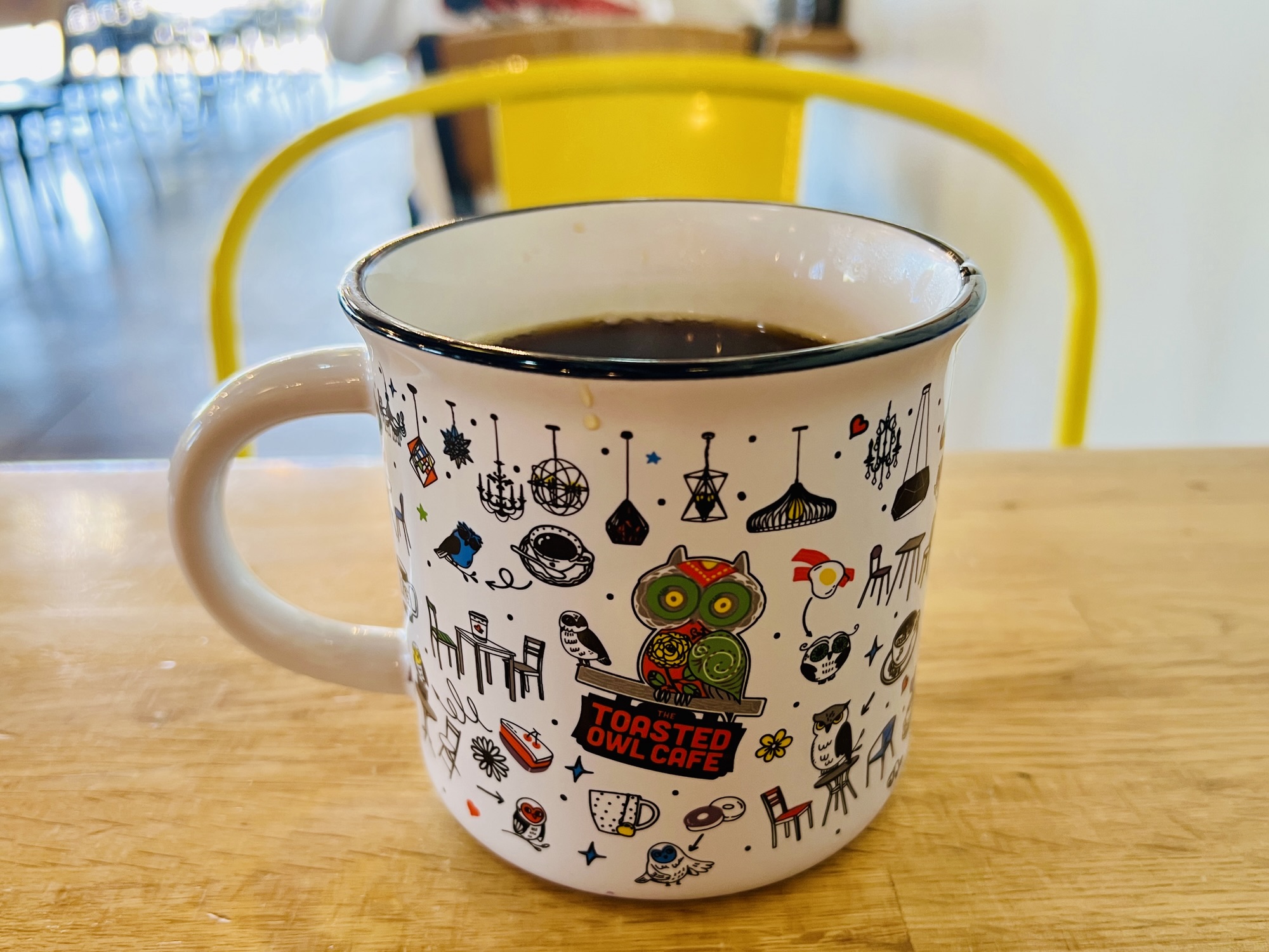 Toasted Owl does not offer espresso drinks but offers unlimited pours of its robust coffee in a colorful collection of branded mugs. There is a liquor license that allows for mimosas and “bloody Mary’s.” (Although owls are thought of as wise, this one adds an unnecessary apostrophe.) Maybe a lesson on Duolingo covers that, and thankfully the company’s mascot appears to have been resurrected after its Tesla takedown. Whether it’s learning languages or eating breakfast, lunch, or brunch in Uptown, the owl seems to be the species of the movement.