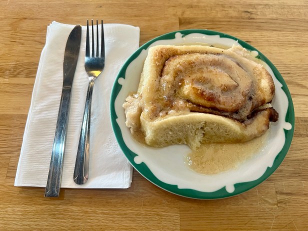 The Jalapeño Owl burger is not as spicy as expected but well prepared with white cheddar and plenty of grilled onions in addition to the seeded peppers within. All sides come with fries by default or an option of a side salad, sweet potato waffle fries, or onion rings instead. Although many items at Toasted Owl like pancakes and French toast already have a certain level of sweetness, the concept of breakfast dessert is not overlooked here. A cinnamon bun oozes its sweet glaze all over its plate, resulting in a messy but shareable finish (or start) to a meal here.