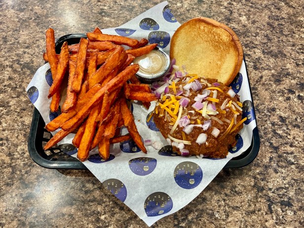 In some cases, those toppings tower over the patty, creating a vertical burger. In the Steakhouse burger, slabs of bacon intermingle with bleu cheese and onion rings. Both steak sauce and aioli are provided on the side for a double dip experience. The Tempe Burger has generous slabs of avocado, bacon, pepperjack, and green chili, and the chili cheeseburger is served open-faced with chili, diced onions, and shredded cheese. The chili is a classic ground beef version with a slow burn and a complex flavor profile including cumin and cinnamon.