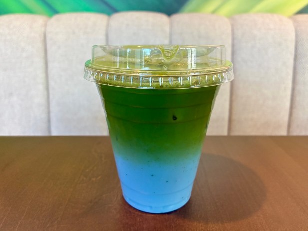 The basic menu of cappuccinos and lattes is augmented by seasonal specials that can be served hot or iced. During the recent summer months, those have included a Blueberry Dream Matcha that has two layers. The top one is a grassy green from the matcha, and the lower layer has an azure color not so much from the berries, which often take on a reddish hue when pureed, but instead from butterfly pea flowers, one of the bluest foods around. Somewhat restrained in its sweetness, the beverage is a successful mix of distinct hues and tastes.